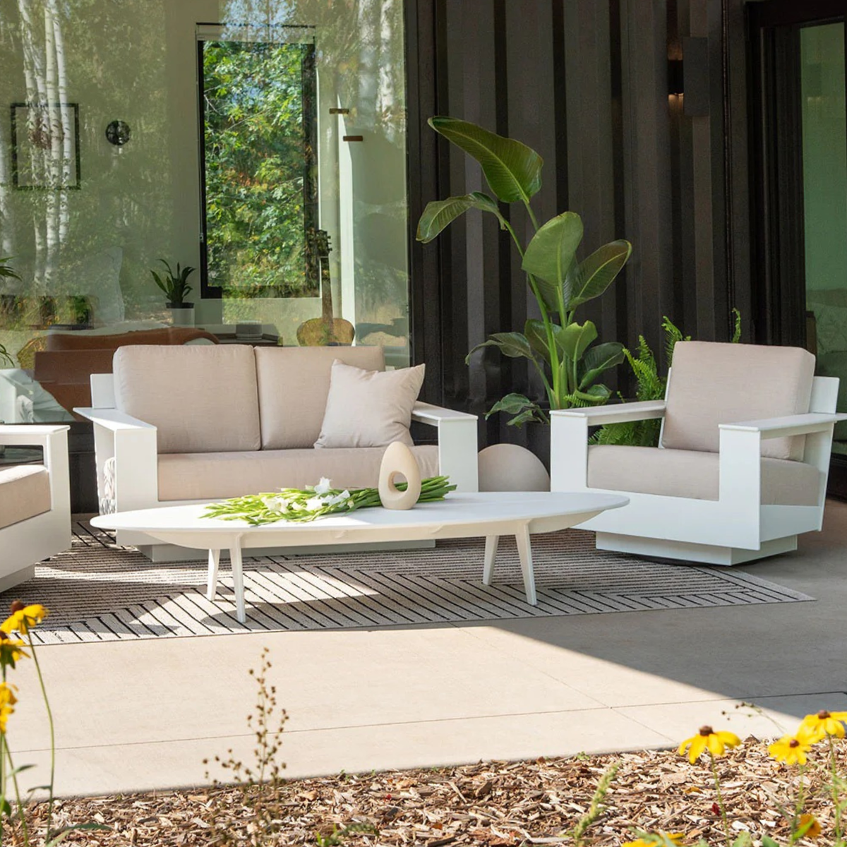Maximize your outdoor living spaces with sustainably-made patio and dining furniture that’s expertly built to withstand any weather. Our selection of outdoor tables, chairs, sofas, and sectionals from Ethnicraft, Mater and Loll Designs are crafted to offer quality comfort and style, with minimal maintenance, or environmental impact. Ethnicraft’s solid wood dining and lounge furniture is made with FSC-certified hardwood sourced from responsibly-managed forests; it brings a natural elegance that complements nature seamlessly. Mater’s patented technology upcycles discarded plastic waste into stunning, modern pieces that can be disassembled for future recycling, and Loll Designs uses recycled plastics to create vibrant pieces that are maintenance-free so you’ll want to spend even more time outside! Add an extra touch of beauty to any seasonal patio, backyard, deck, or porch when you incorporate furniture and accent pieces that are not only functional and durable, but stylish as well.