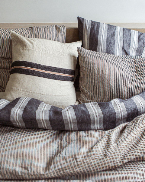 Five-star hotels figured out years ago that simple, clean bedding will make any bedroom feel luxurious, and that secret applies to your home, too. Start with organic cotton or linen sheets to create a neutral base, then layer on a duvet with a cover in similarly light shades—or some simple stripes if you prefer contrast.