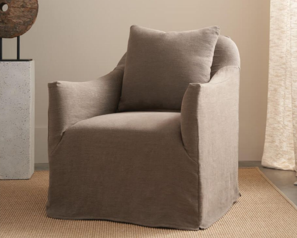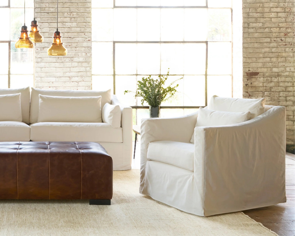 Another customer favorite that’s hand-built just for you by Rowe, the laid-back Noel Swivel chair is a fun and casual fit for family rooms, nurseries, and office nooks alike. Just don’t be fooled by its understated, easy-to-clean slipcovered appeal; this accent chair’s slightly curved backrest provides extra support, while its loose-fill cushions will make you want to lounge away for hours without a care in the world.