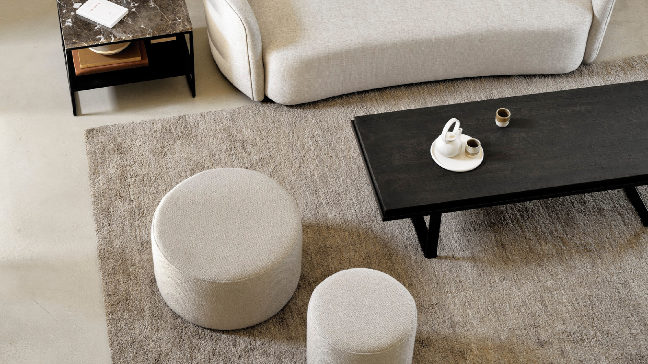 Offset layouts let you incorporate the character and design of a rug for often slightly less money (if you’re buying a smaller size). And if you’re a little short on space, an offset arrangement can make the room feel larger by leaving more space between the edges of the rug and the walls.