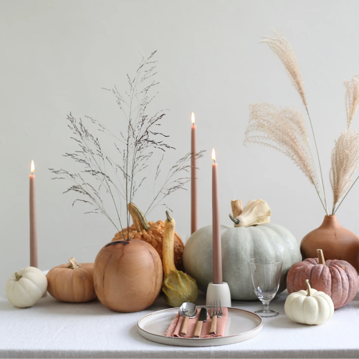 An often overlooked, but key element of interior design is lighting. That’s because the right amount and type of light can either showcase your furniture and decor perfectly, or distract the eye from appreciating an otherwise beautiful space. For autumn, our team encourages softer lighting additions like the washi paper lamps from Asano that offer a more ambient warmth to tables, desks, and corner spaces. Candlelight is another way to bring a particularly stunning seasonal element to your home; even something as simple as a standalone candle from East Fork, with its reusable vessel, can extend a really lovely effect. For a light source that also doubles as art, pair a Moonlight Candelabra in solid walnut wood with hand-dipped taper candles in fall colors from The Floral Society, and you’ll instantly feel the difference. Finally, never underestimate the importance of decorative mirrors as daylight hours grow shorter. They can effortlessly create the illusion of a larger space, while reflecting natural light for a more expansive feel. Looking for a larger option that makes a great addition to any design style? Our interior designers love the contemporary elegance of Ethnicraft’s sustainable PI Floor Mirror.