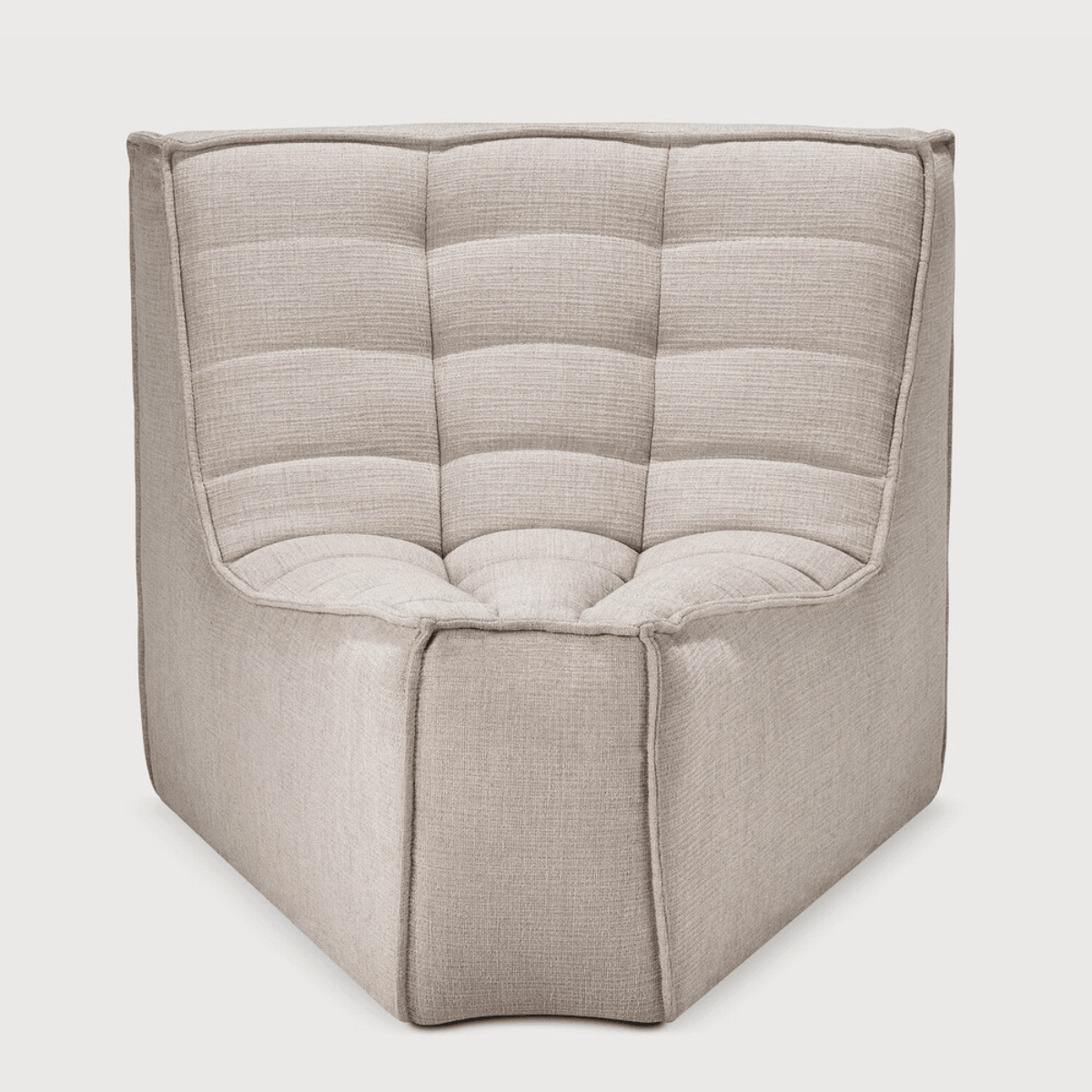 The N701, designed by Jacques Deneef for Ethnicraft, is a deep-sitting sofa. The curved, low profile creates an illusion of taller ceilings, making for a spacious and attractive modern living space. You can choose from 6 pieces to configure the perfect sofa: 1 seater (chair), 2 seater (loveseat), 3 seater (sofa), corner, rounded corner, and a footstool. The chair, loveseat, and sofa can all stand on their own. The rounded corner adds a design detail that pops if floating the sofa in the middle of a room. With this many perks, it’s no surprise it’s an Ethnicraft best-seller.
