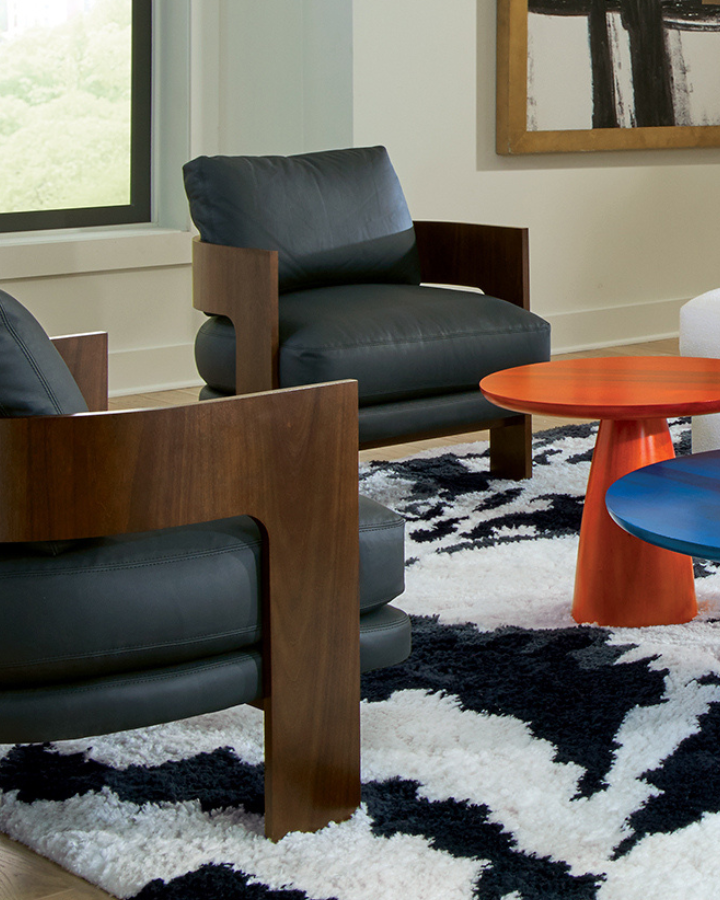 We’ve never seen a chair quite as unique as the Nicholas chair from American Leather. Its captivating structural design and textured upholstery is sure to be a standout wherever you place it.