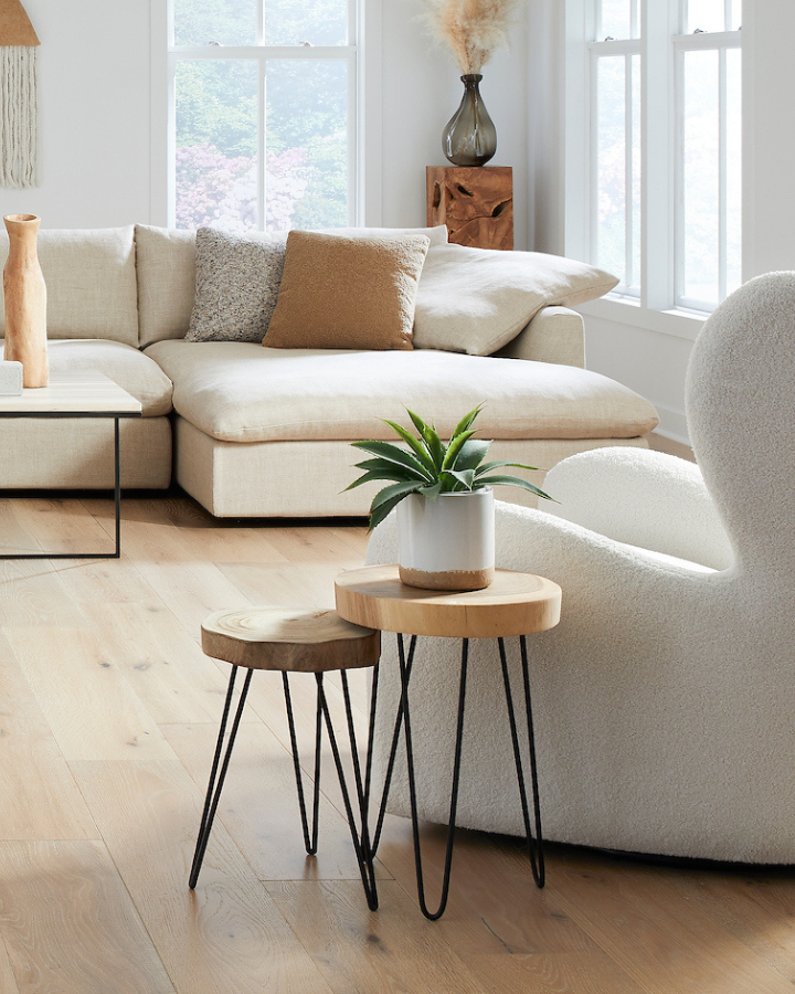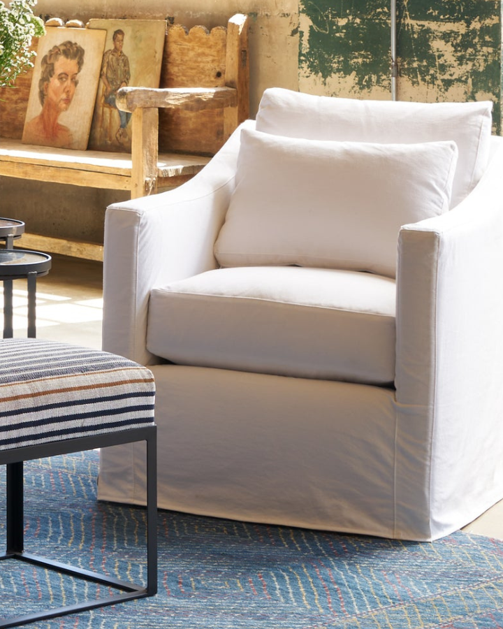 This swivel chair is available in 100% organic fabric and fill options so you never need to compromise on style or health.