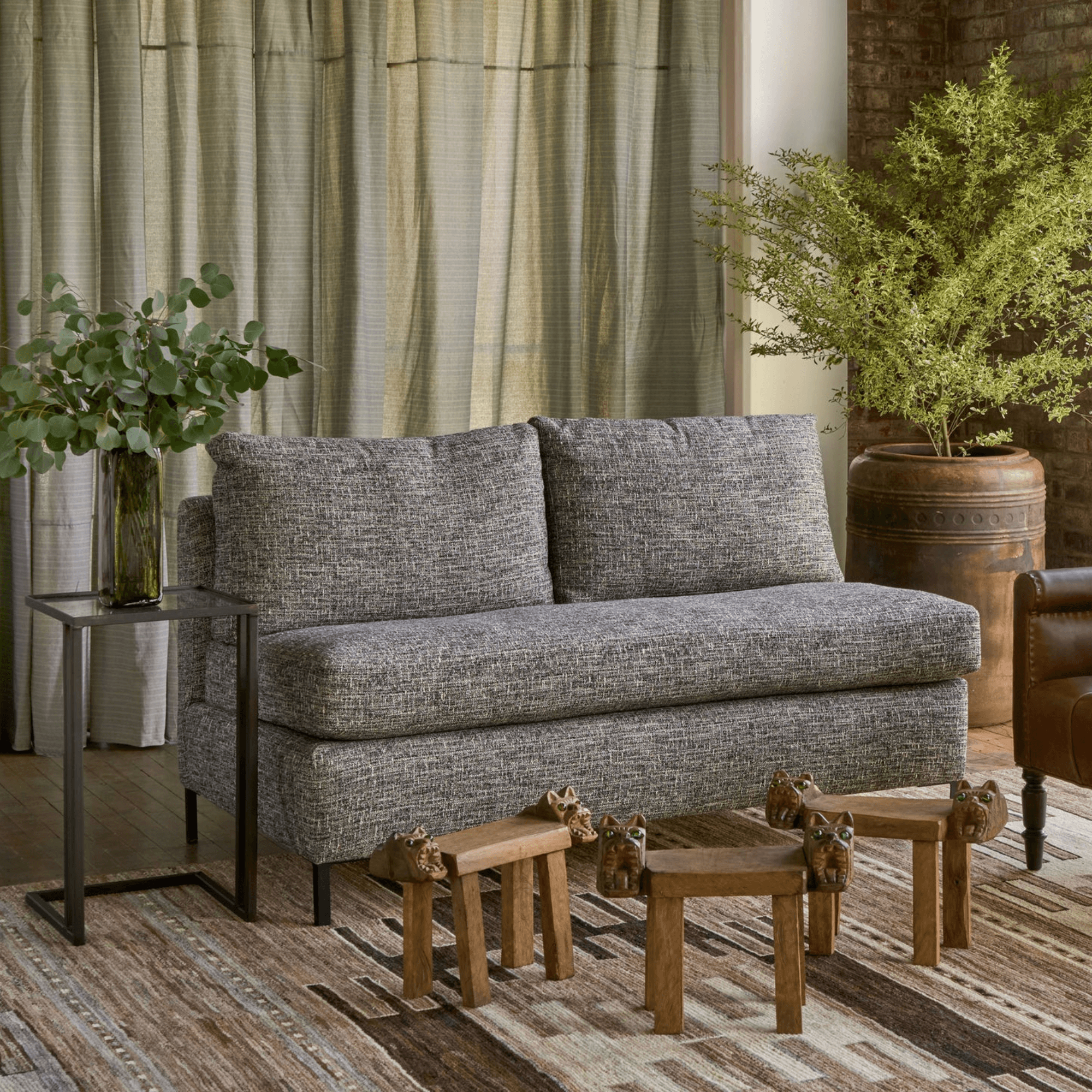 Timeless and graceful with a refined sense of integrity, this Mocha Mousse palette is tailor-made for those with a more classic approach to interior design. Easy breezy blues and grays contrast our rich brown hue for a sensible effect that feels polished and confident, but still approachable. With our Urban Natural workshop partners who specialize in expertly crafted, heirloom quality furniture that’s built to stand the test of time, this color palette lends itself especially well to both mid-century modern, and vintage-inspired designs.