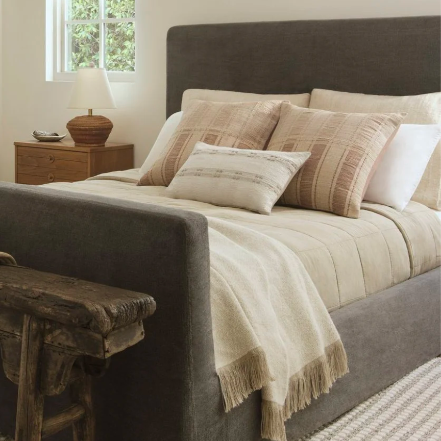 As the weather warms up, you might want to swap out those heavier blankets and duvets for something cooler. We love Libeco, not only for their gorgeous, 100% organic linen products made from locally-sourced flax, but also for their company commitment to sustainable practices, and their efforts toward becoming a CO2 neutral production. Try their Stripe Duvet Cover for a medium-weight, super soft night’s rest, or consider the Patagonian Stripe Coverlet made of unique linen yarns, for artisanal beauty that can be appreciated with or without a duvet. Another way to lighten up for Spring is to open up your color palette with more breezy pastels and cooler earth tones. Amber Lewis x Loloi throw pillows come in Madera green, Cypress beige and pink squares, or Marin natural rust. They also happen to be hand-woven, and made from 100% sustainable cotton, so you can be sure you’re investing in the best for your family and the environment!