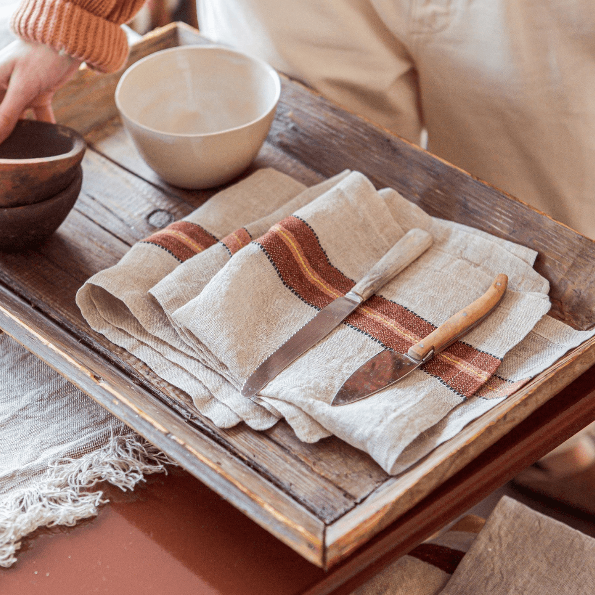 From garden vegetables to fruit salads, nothing says springtime like a well-set table with friends. An easy way to incorporate a lighter look for this season is to trade out any dark colored dishes, napkins and cutlery for something a little crisper and bright. Farmhouse Pottery offers beautiful gold Essex Flatware made from stainless steel in a timeless design you’ll want to show off year-round, and their petite gingham scalloped napkins in pastel colors are 100% cotton, and a perfect way to welcome in that lovely picnic weather! We also love their versatile Silo Bowls, handcrafted and wheel-thrown by expert artisans to complement your every meal and occasion. When it’s time to complete a more elegant table, Libeco’s Hudson linen tablecloths come in various earth tones to highlight the natural beauty of spring in an organic and ethically sourced way.
