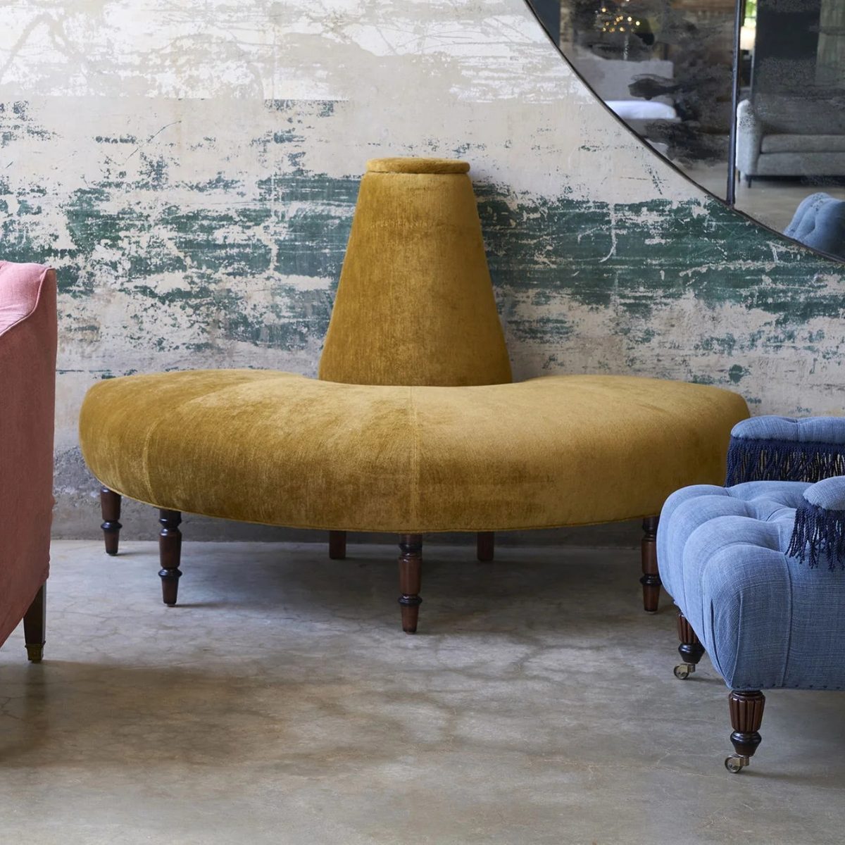 An affinity for vintage prints and patterns is one of the most signature ways John Derian lends his influence to the collaboration with Cisco. The variety of exquisitely textured fabrics and rich color palettes that complement this furniture line are so memorable, in fact, they warrant their own mention. You can even select any one of these fabrics on their own, and request it as the upholstery option for other pieces of Cisco furniture, whether they’re part of the John Derian collection or not! Sustainably made from 100% linen, or a sumptuous linen and cotton velvet, each fabric pays homage to the vintage aesthetics of 19th century America and Europe. The John Derian Velluto Gold, unveiled at the 2024 High Point Market, is the newest addition to these vibrant and timeless fabrics, and a truly eye-catching way to showcase any accent chair or sofa.