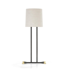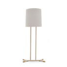 The Treviso Floor Lamp is a playful and distinctive piece, featuring a cross-shaped wooden base and a sleek fabric shade.