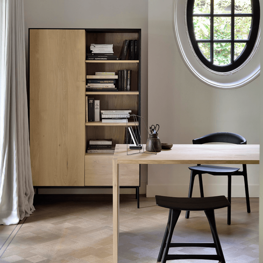 Ethnicraft Blackbird collection, designer Alain van Havre brings together opposing elements, combining soft round legs and eye-catching graphic lines into light and airy designs.