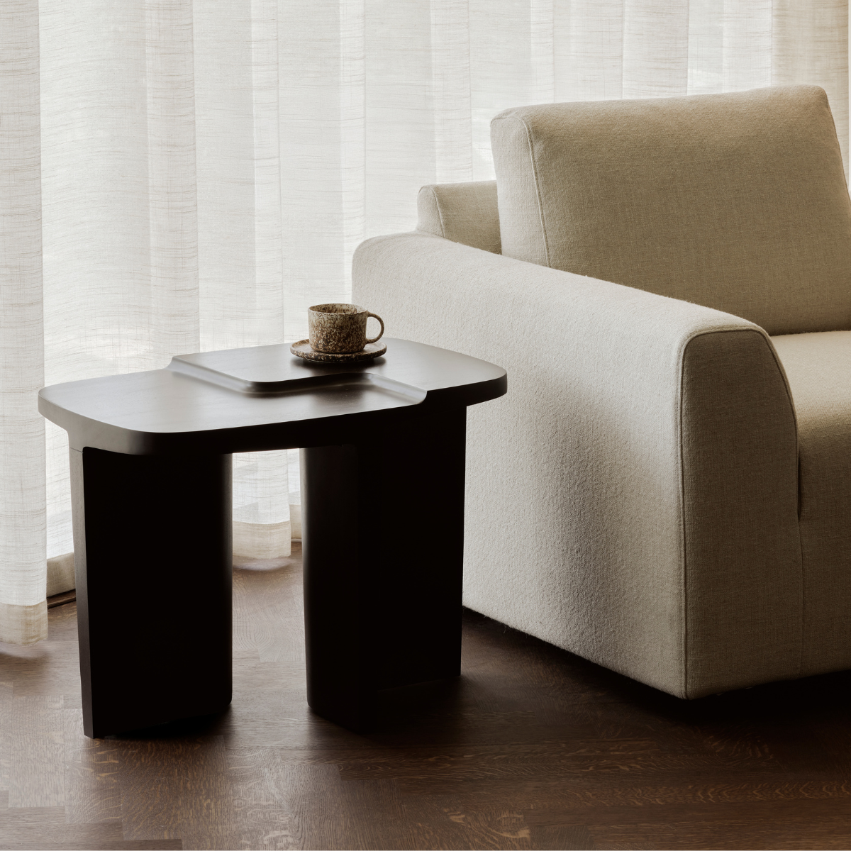 With bold presence and a distinctive form, the Brutalist offers a striking interpretation of functional furniture. Crafted entirely from solid mahogany, each piece is defined by its strong silhouette and carved openings—balancing mass with negative space. A rich stain and varnish finish enhances the natural grain of the wood, adding depth and warmth to its architectural shape. Both statement and surface, the Brutalist collection brings enduring character to any setting.