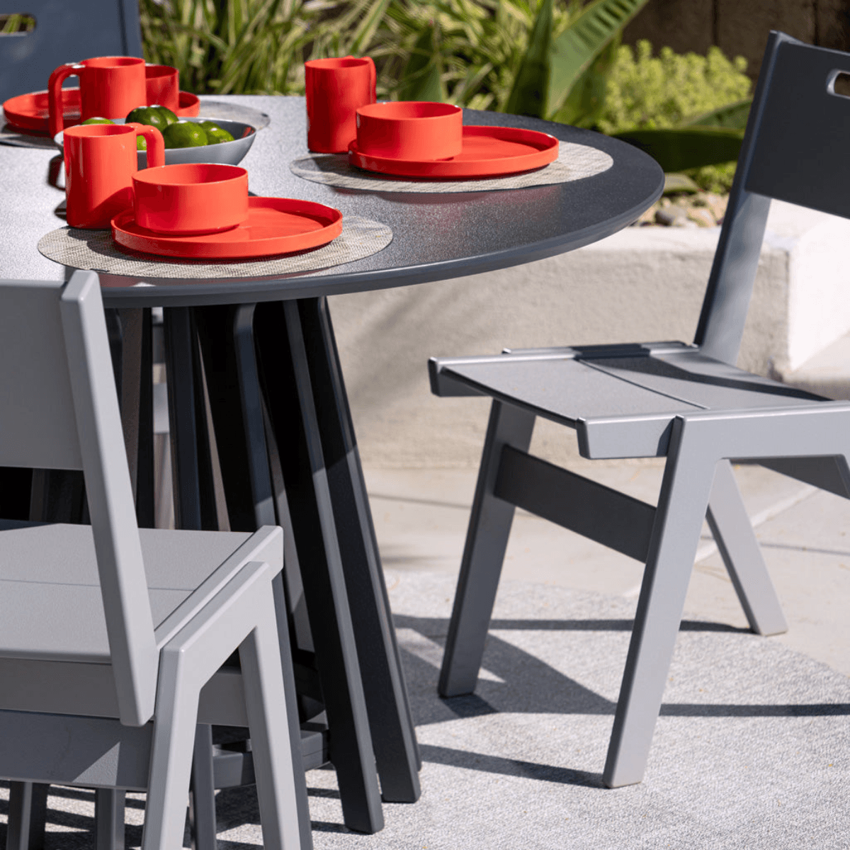 A table can be more than a spot to savor a tasty meal or a refreshing beverage. It can be the focal point that draws you into your outdoor space with its elegant design alone. The Good Company table with its unique sculptural base is designed to make a statement. Whether you are enjoying a cup of coffee in the morning or bringing friends together for an impromptu happy hour, the Good Company Table can accommodate it all with style.