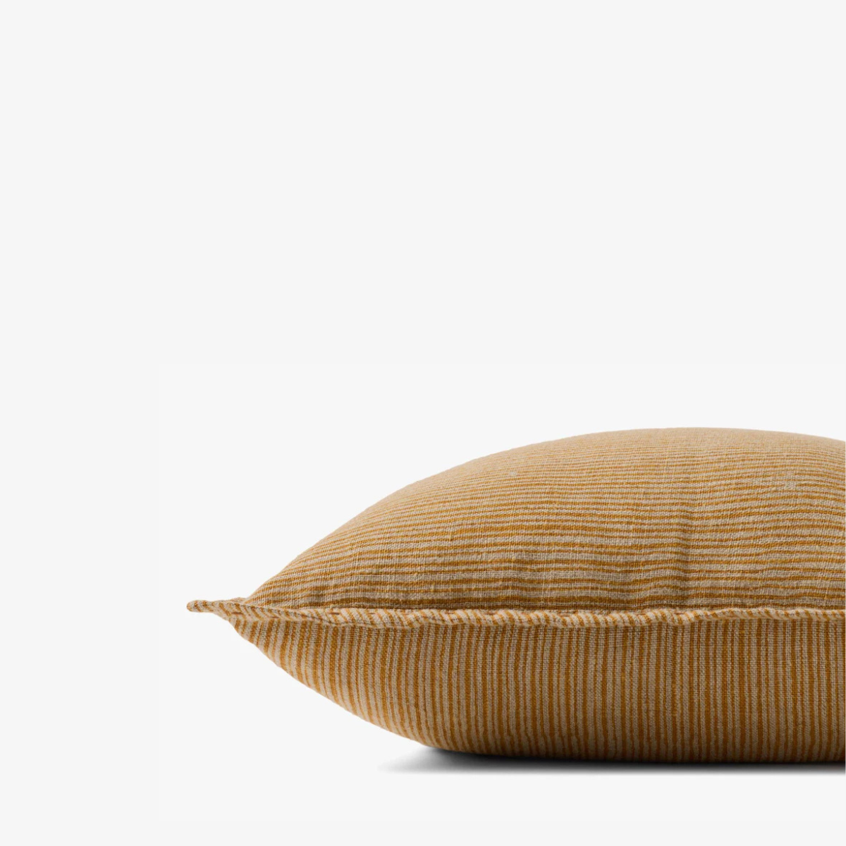 Linen Stripe and Floral Print Pillow in Gold (Set of 2)