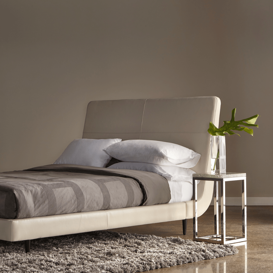 A minimalist design with maximum impact, the Menlo Park bed packs a powerful decorating punch. Created by award-winning designer Rick Lee, known for his use of organic shapes, the piece represents the transformation of a beloved sofa design to a bedroom piece with its own dramatic impact. The sleek platform bed boasts a slim, gently-sloped headboard that takes command of a room with memorable flair.