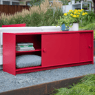Keep your outdoor space neat and tidy with the Slider Console. The Slider Console is a great standalone piece, but it also pairs perfectly with Loll's Platform One Sofa for a cohesive look and a functional storage shelf that’s within arm’s reach from your favorite lounging spot. You can also station this fantastic storage solution in your garage, entryway, or mudroom and stow your garden tools, supplies, and more! Choose between monochromatic for a clean and sophisticated look or a colored frame with cloud white doors for a little extra flair.