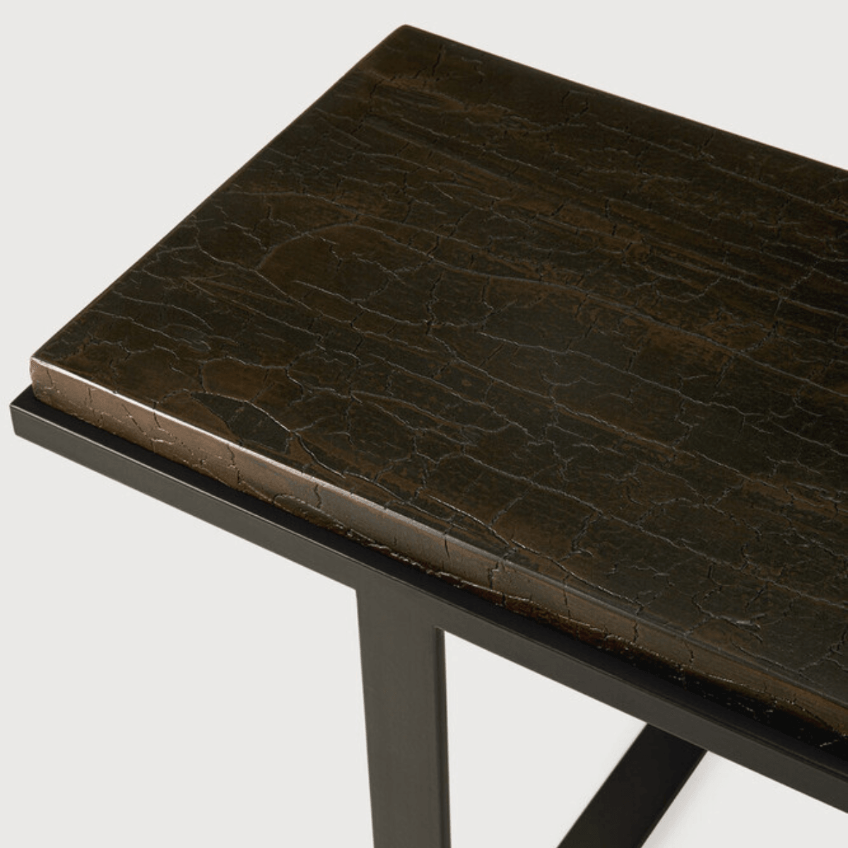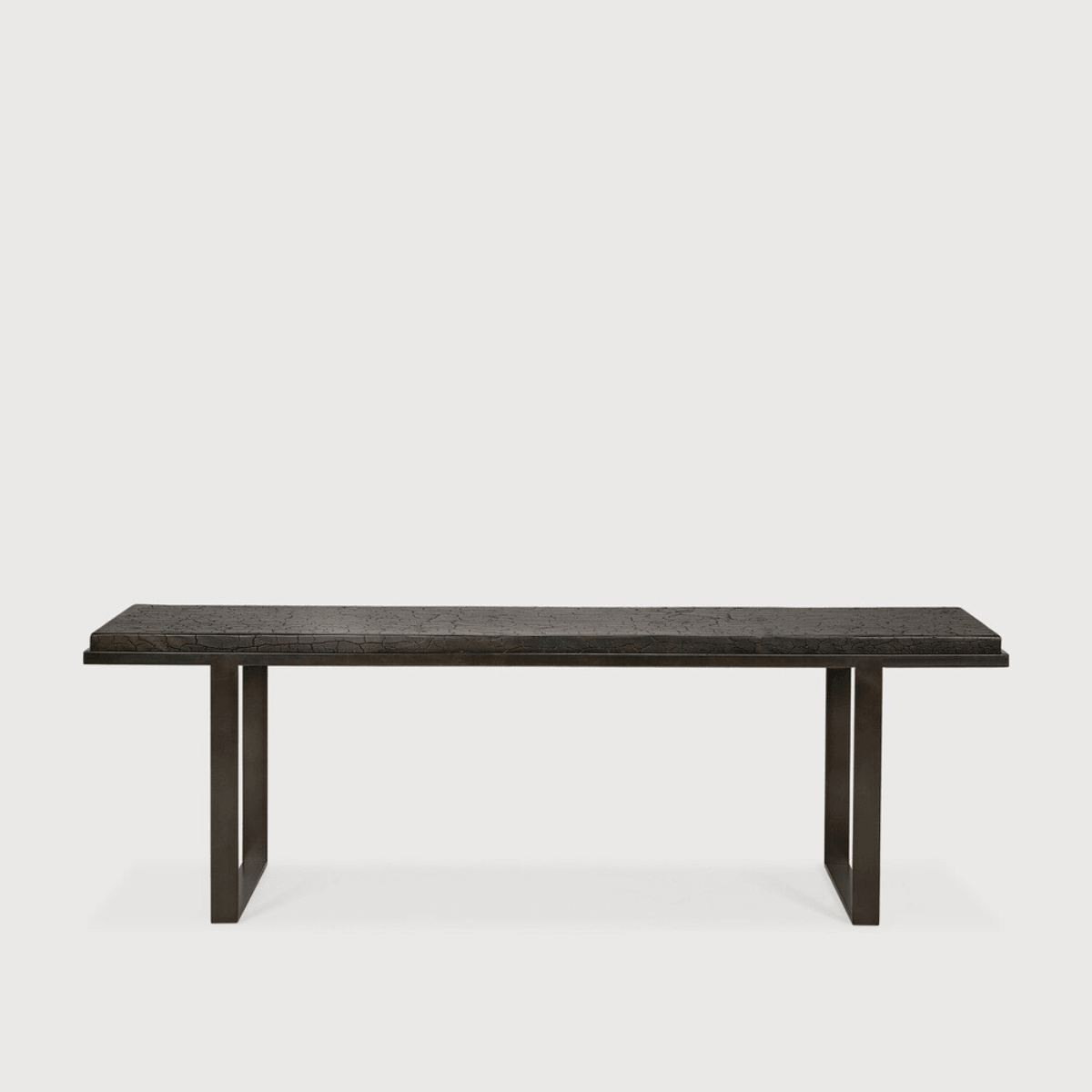 Relying on some of the oldest artistic ancestral techniques, the deep surface of the Stability console is shaped by hand by Ethnicraft's skilled artisans. Natural mineral powders and color pigments blend to form the console's unique finish. The thickness of the top makes for a revealing contrast with the airy base. Simple lines and a standardized height showcase the clean beauty of well-crafted metal work.