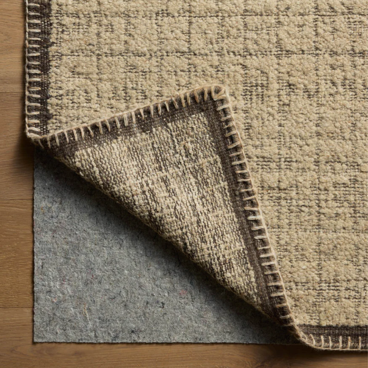 Beautifully crafted by hand, the Bowie Collection by Amber Lewis x Loloi is a textured area rug with an earthy, organic aesthetic. The pile has a flatweave base with chunkier, slightly raised geometric motifs and whipstitched edges. It is an elegant yet easy-to-work-with rug for living rooms, bedrooms, and other high-traffic areas of the home. This collection is made of wool, cotton, and other fibers in India and GoodWeave-certified, ensuring our commitment to ethical production and the support of weavers communities.