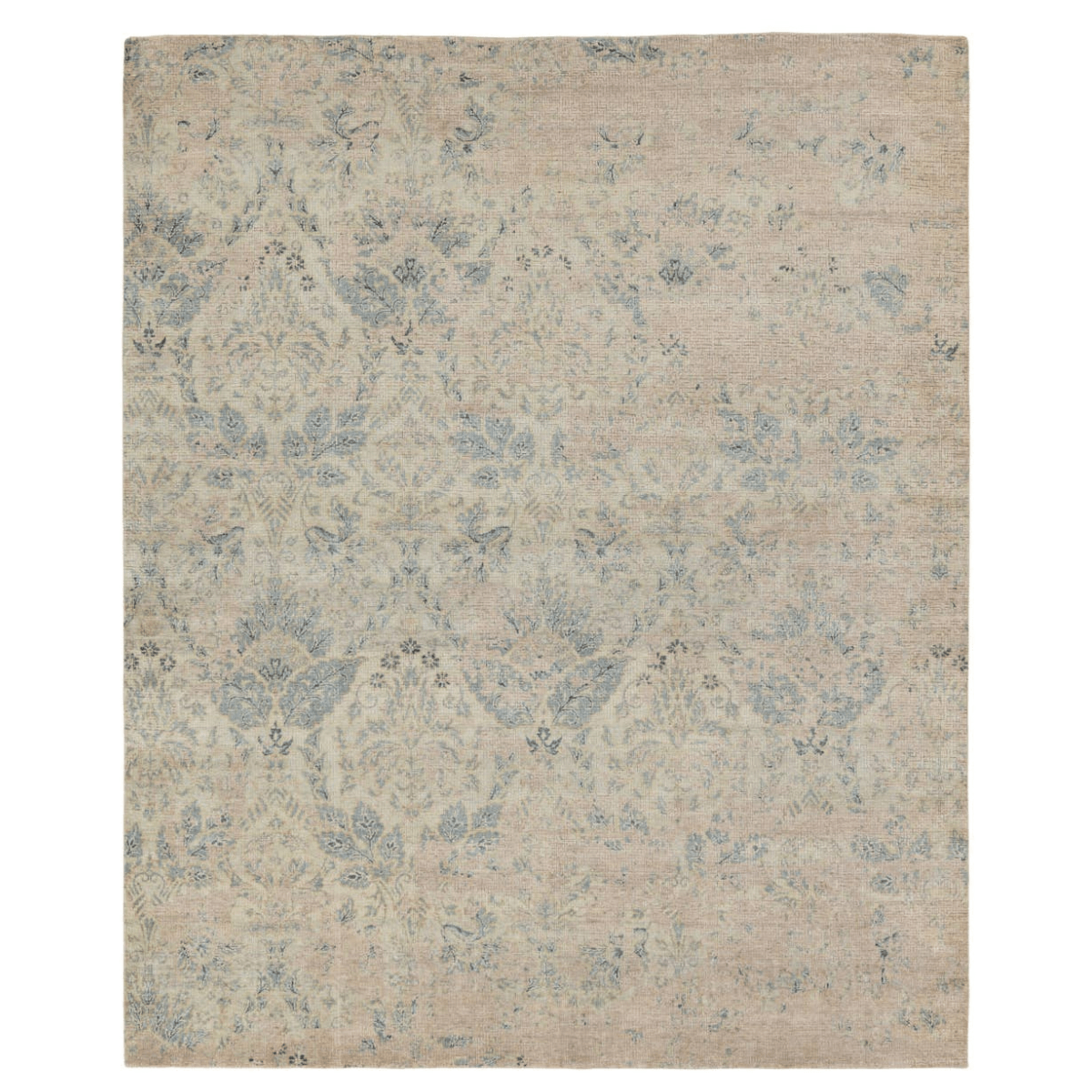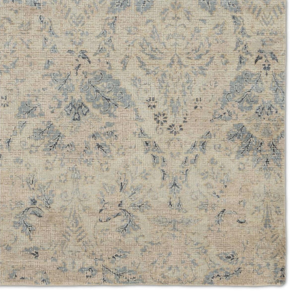 The exquisitely made Chennai collection boasts a modern take on classical design, with an emphasis on innovative construction techniques. The hand-knotted Madora area rug showcases an ornate brocade design that balances rich, inviting texture and soft tones of gray and blue. The silk and wool pile features a soft wash and an oxidized effect that creates stunning high-low texture over the design.