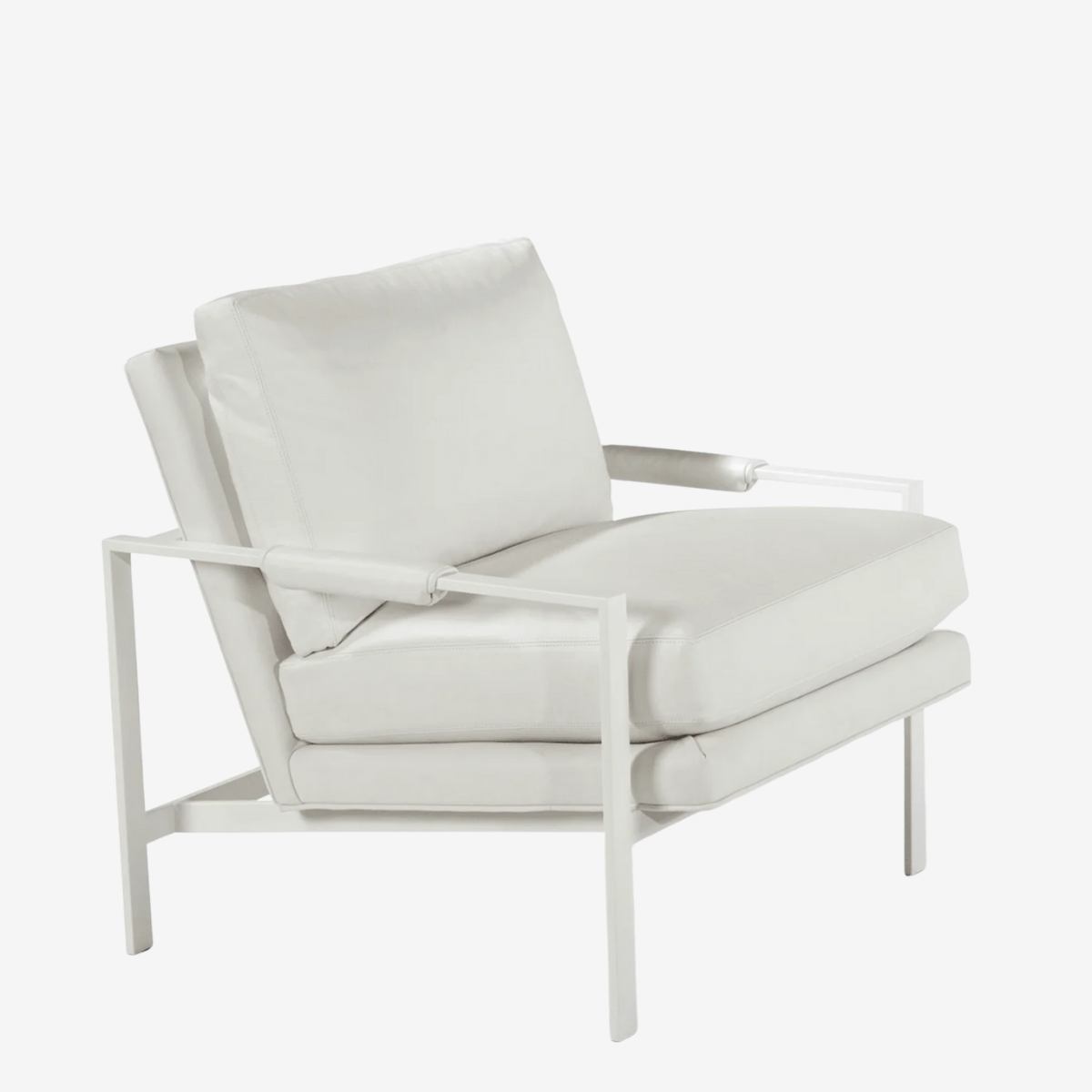 Originally designed in 1966 by Milo Baughman, Thayer Coggin's 951 lounge chair is one of the most iconic chair designs of the mid-century modern era. With its slender rectangular steel frame, luxurious blend-down seating, and upholstery-wrapped armrests, the 951 is a striking mix of modern style and alluring comfort.