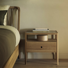 With its one drawer, open space, and slightly tapered legs, the Spindle bedside table is the perfect no-nonsense companion for the striking Spindle bed.