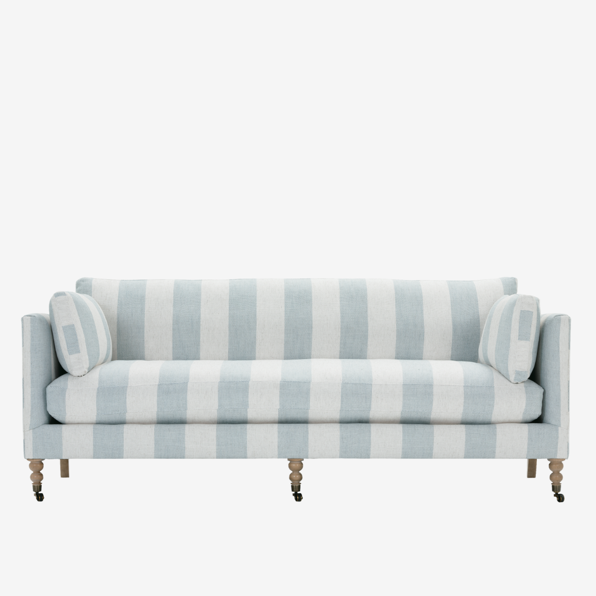 The Madeline, both a designer and customer favorite, is made with a Cloud down cushion. This cushion is one of Rowe's most luxurious and comfortable cushion options. The Cloud down cushion requires daily maintenance - fluffing, flipping, and smoothing of the seat and back cushions to keep its appearance looking fresh. Comfort wrinkles are to be expected and are a feature of the sofa's style – a traditional sofa frame with modern, relaxed seating.