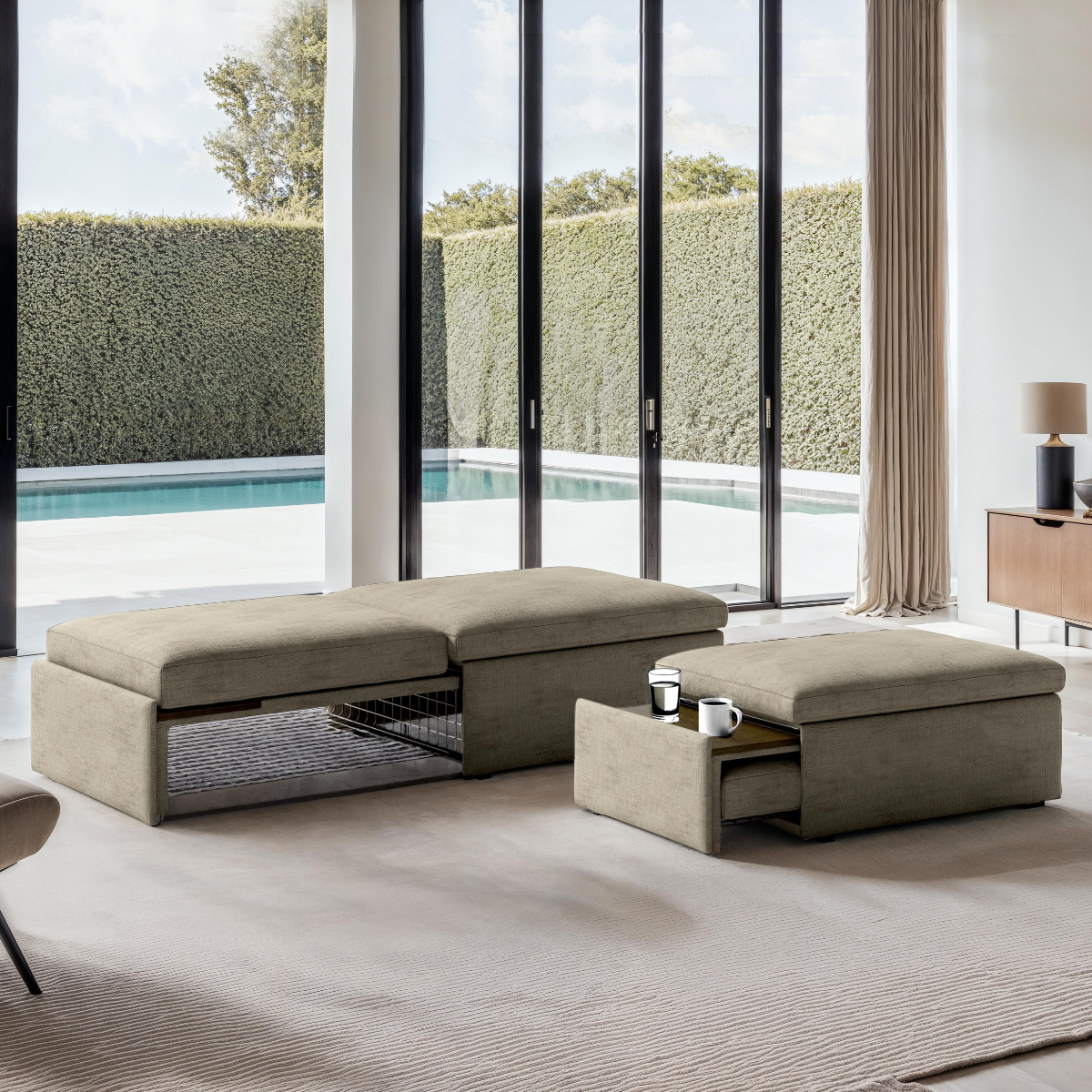 A great contemporary design with medium wide track arm and married to Luonto's motorized level function. Now, in 15 seconds watch the sleeper convert to a bed with its wireless remote. Or opt for manual level function and be greeted by a gas assisted opening as well as a soft close.