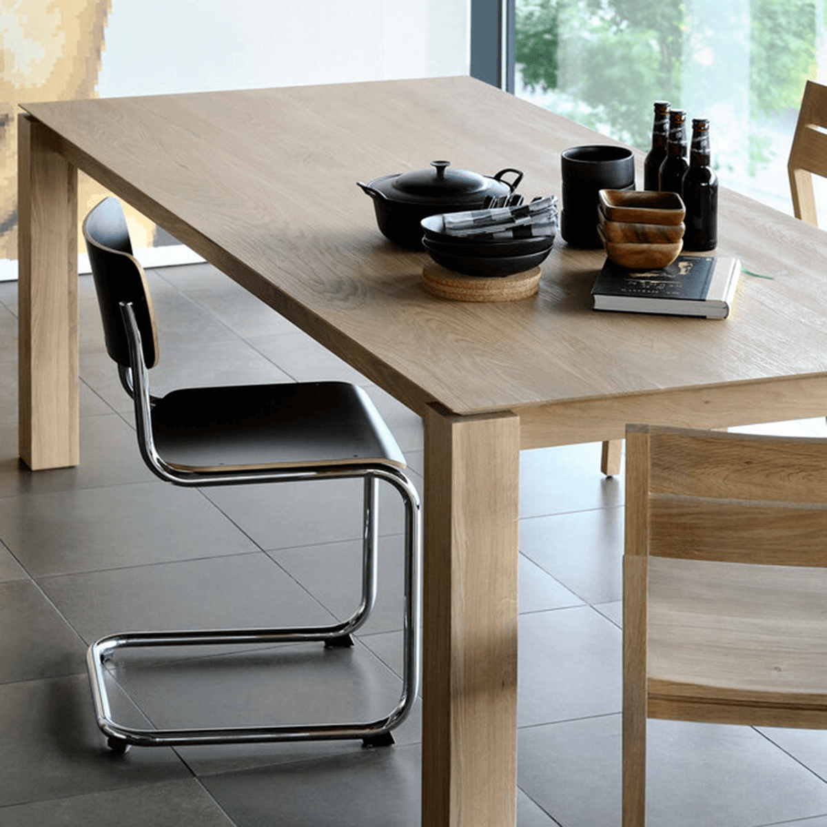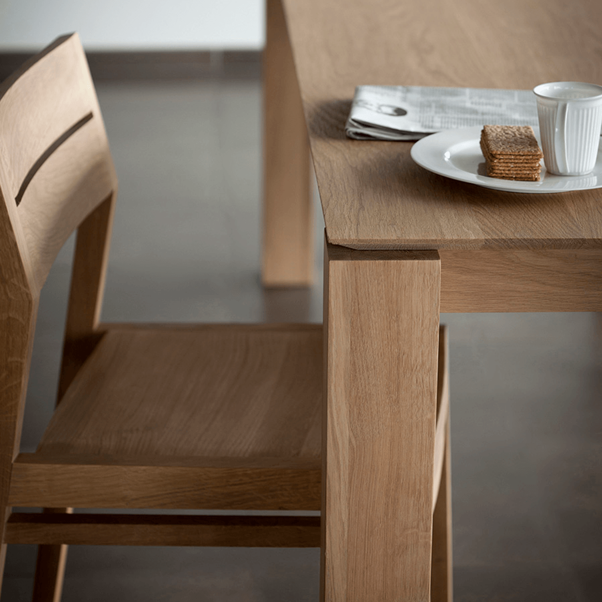 A seemingly simple and straightforward piece, the Slice dining table's subtle corner details add playful sophistication to the functional piece.