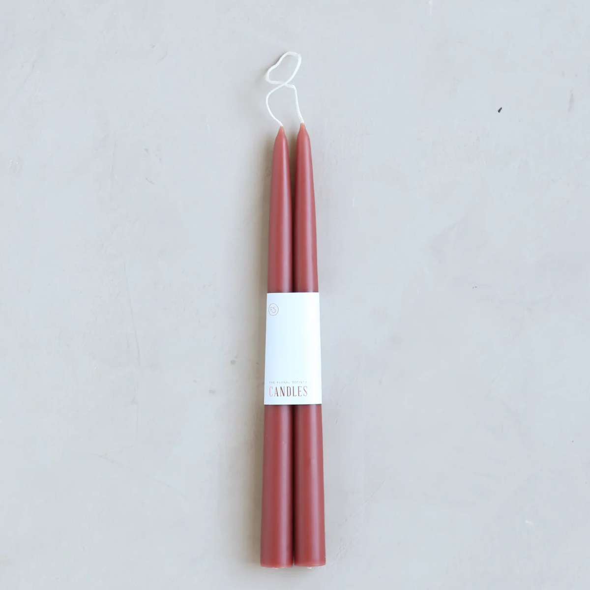 The Floral Society's colors are inspired by nature's natural hues and meant to be burned as a daily ritual or to commemorate a special occasion. Each candle is dipped 35 times for a superior depth of color, and pairs are joined by a braided cotton wick for the cleanest burn.