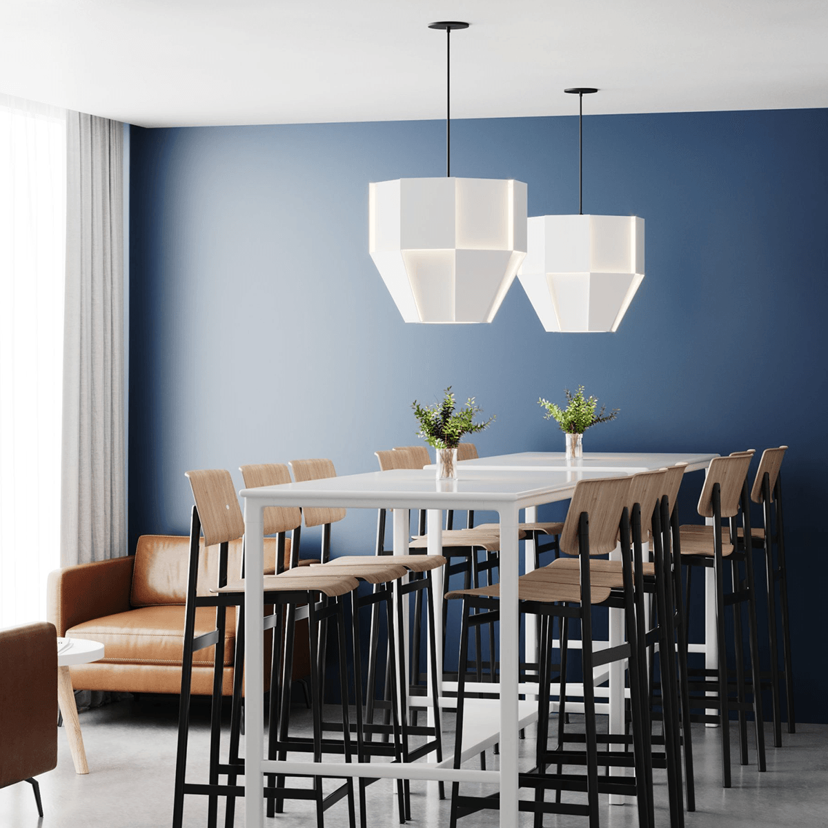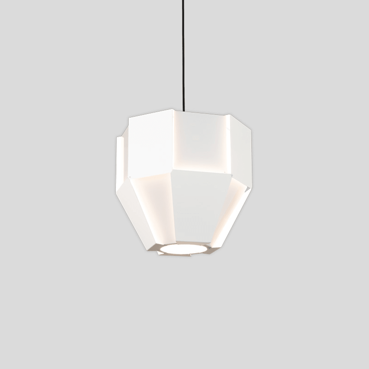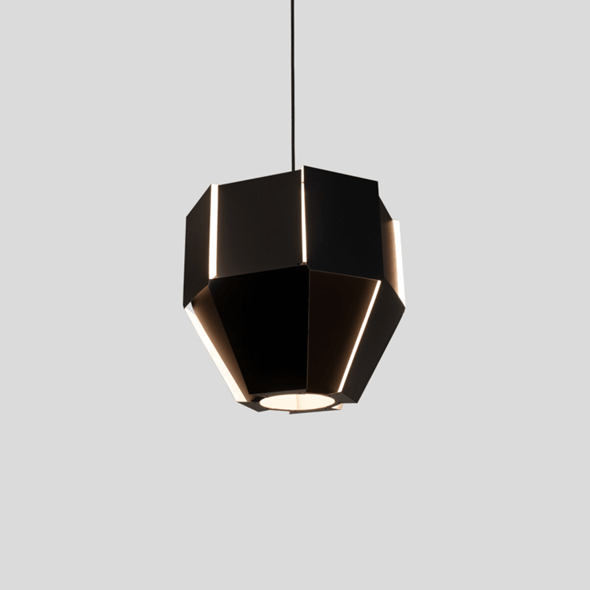 Inspiration for the Astrum dates back to one of the first light fixtures ever made by Cernno. The varying depths of the flat panels strategically obstruct a direct view of the light source. Light reflects off the inside of the outer panels and bounces off the inner panels producing a halo washing effect. The oculus at the bottom functions to emit a useful amount of downlighting. This design manages to pay homage to past modern designs while also feeling a bit futuristic.