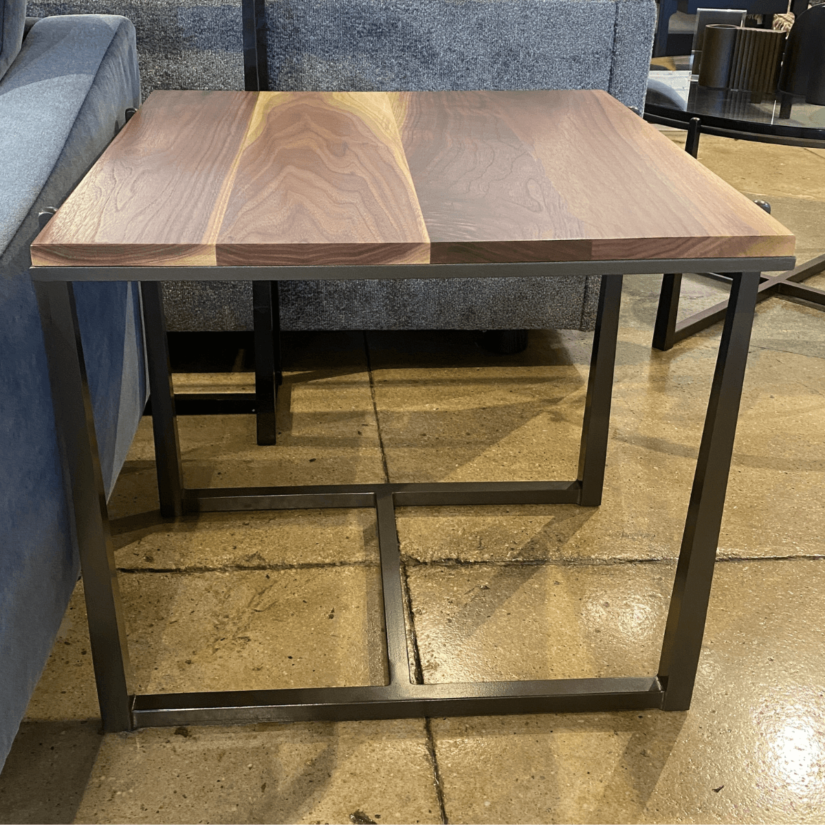 The subtly tapered legs of the Cooper End Table reach up to meet the walnut top with Natural Distressing. The hand-forged legs have a subtle texture that plays up the natural look of the steel. Cooper’s one-of-a-kind styling makes for a sophisticated accent in any living space. Handcrafted in North Carolina.