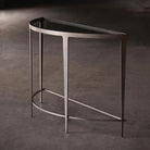 Our Roundabout Console has a Glass top that is elegantly supported by sleek tapered legs.