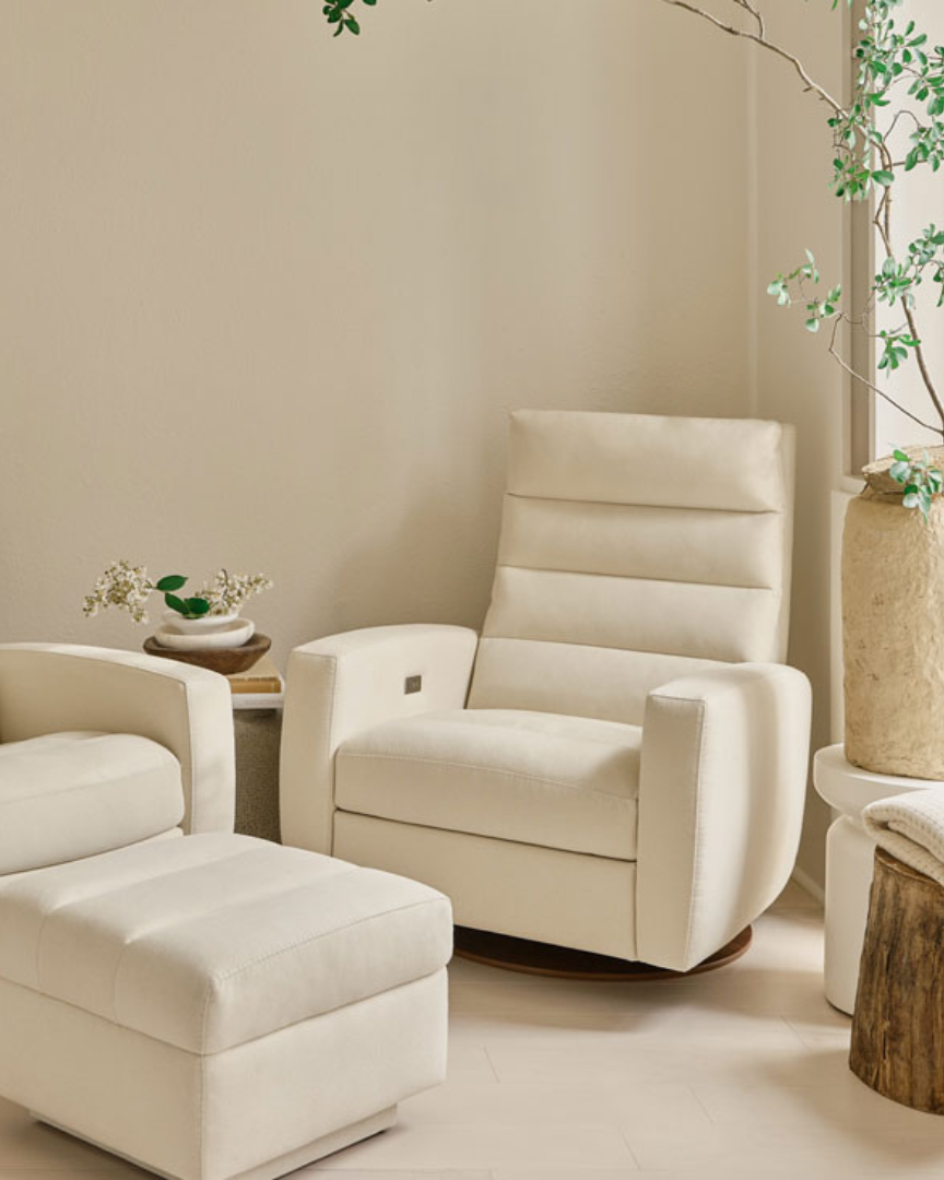 Lounge in our selection of Re-invented Recliners from American Leather and enhance the way you relax. This collection puts a modern, sleek twist on the bulkiness of a traditional recliner chair. The hidden recliner mechanism folds in and out from the base of the recliner for an easy transition from classic seat to premium recliner. It’s the perfect combination of function and comfort without compromising on style or aesthetics.