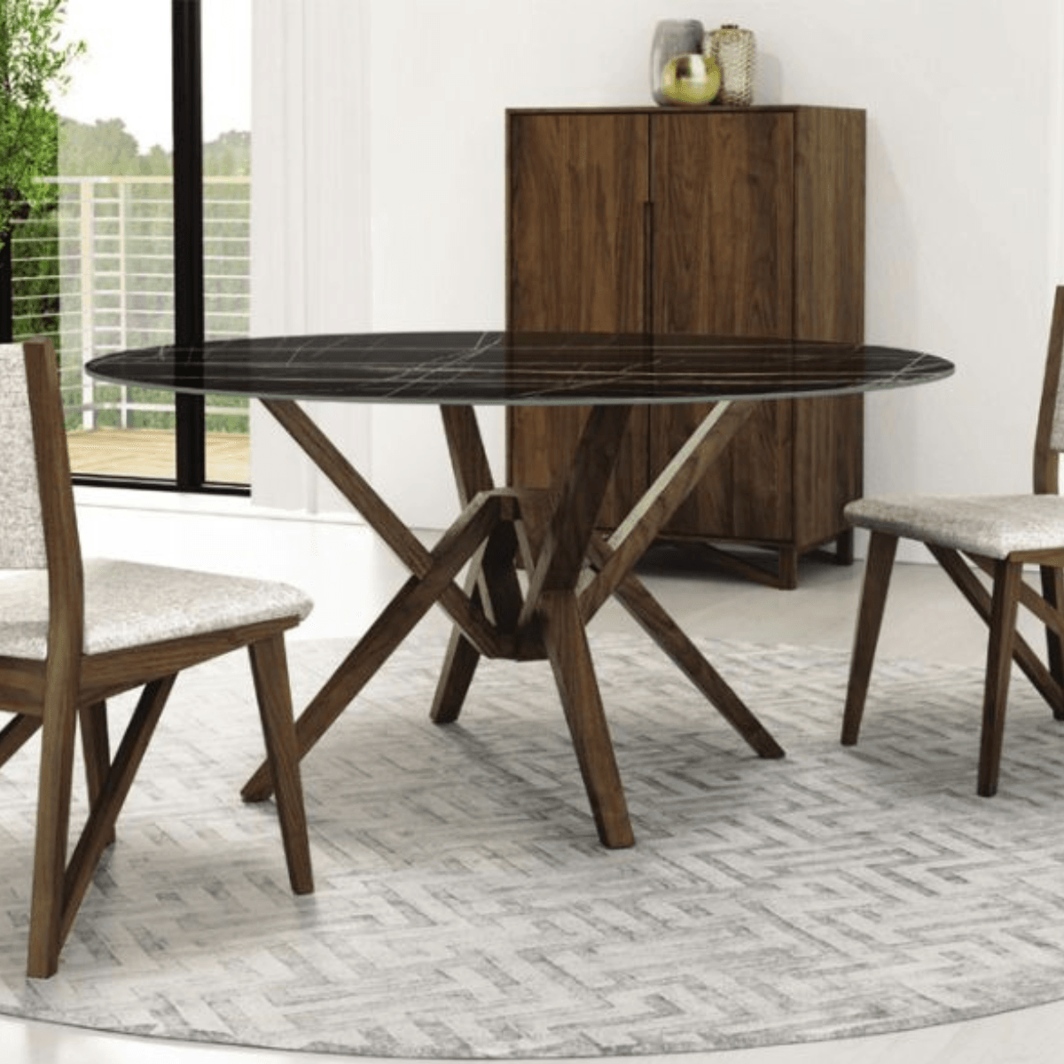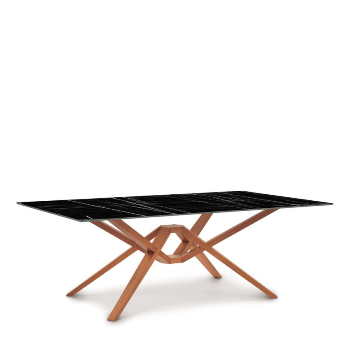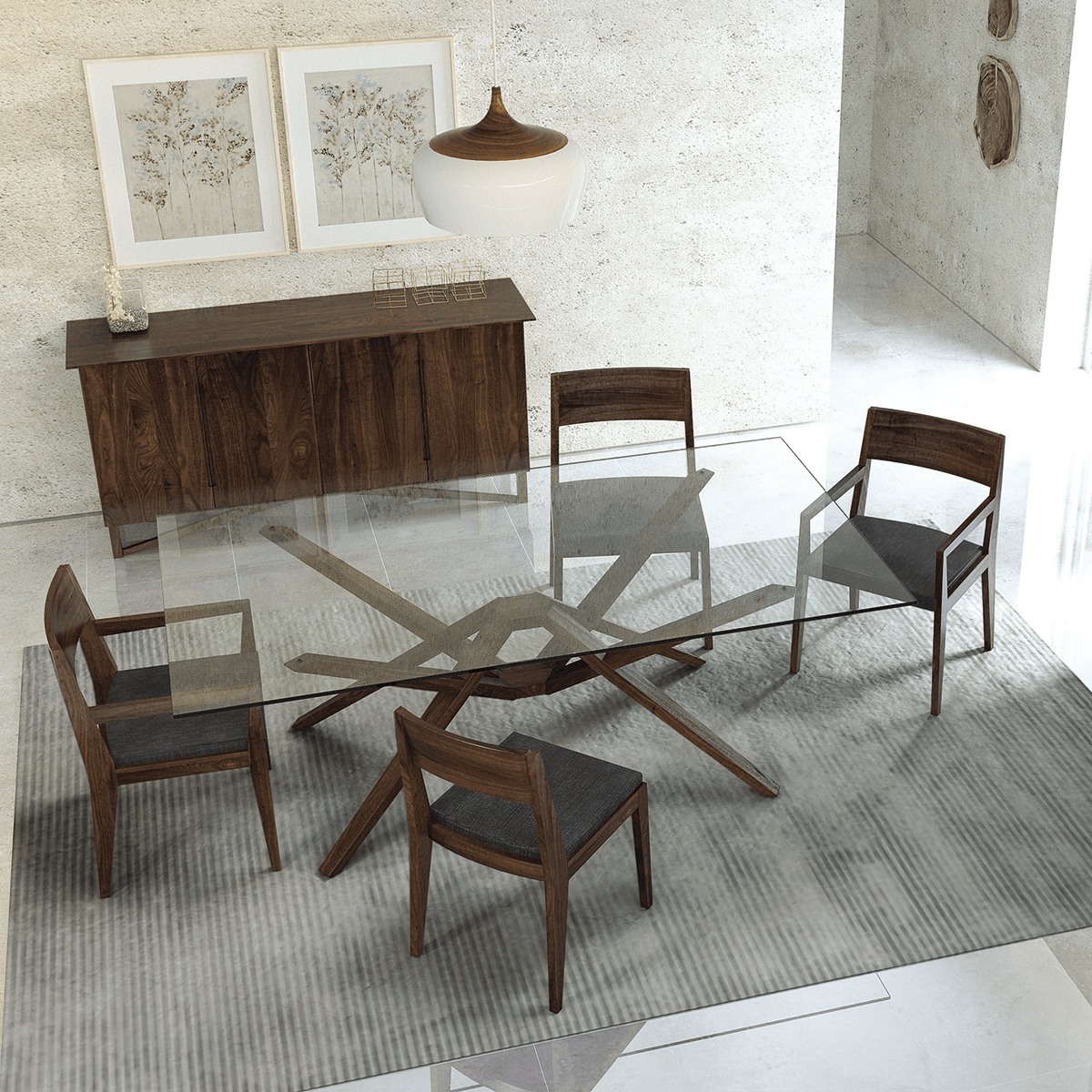 Exeter dining is a striking marriage of isometric tension and modern design. Exeter tables are available in a range of glass top sizes highlighting the unique geometry of the table base.