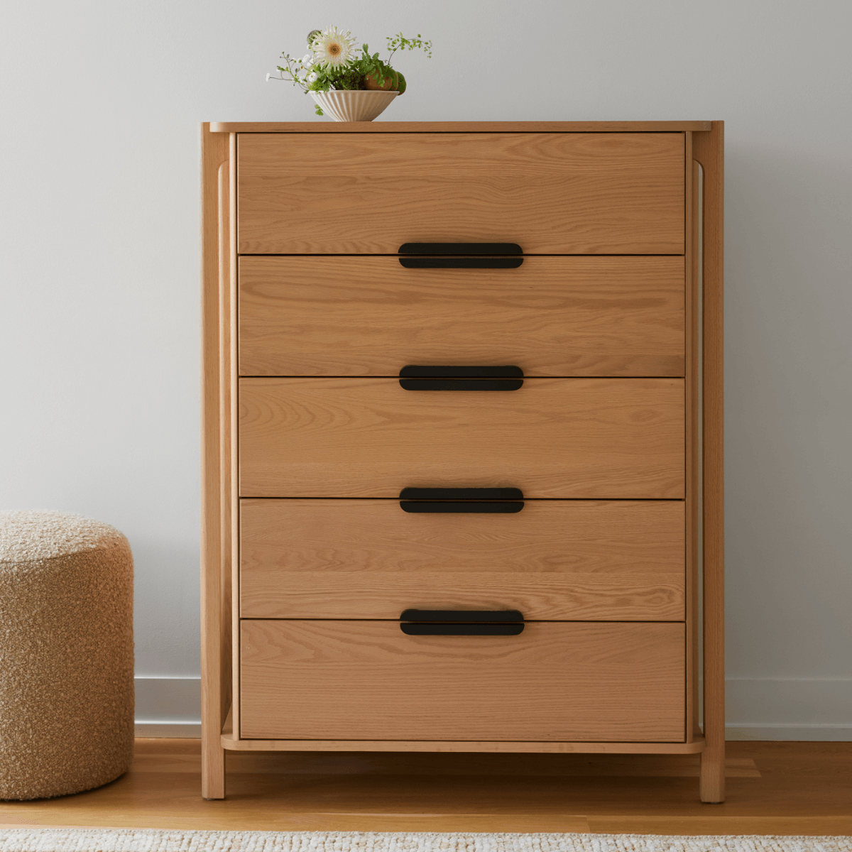 Because GRAYN uses solid natural hardwoods, each piece is set apart by its own unique color variation, pattern, knots, and burls that complement its minimalist aesthetic. True to their values, GRAYN coats every piece of furniture with a lasting, Greenguard-certified clear finish for easy maintenance, moisture resistance, and durability.