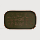 The Second Nature tray collection is inspired by the organic shapes and abstract shadows of nature; stacked rocks, the bark of a tree, the markings on a turtle’s shell. A harmonious blend of organic inspiration and contemporary design, Second Nature perfectly layers hand-printed glass over the warmth of wood. The artistry of the moss green and metallic ink palette brings a quiet sophistication to its surroundings.