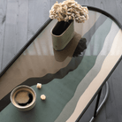 The Wabi Sabi collection of glass trays is inspired by nature. Designer Dawn Sweitzer explains: “While traveling through the blue ridge mountains, the vista became almost like a layered water color painting. Sky blues, grey and mist colors layered the horizon. As the sun was setting it took on a whole new color palette with warm autumn hues like sienna, sand, sepia.” Or how you can find beauty in the not-so-perfect.