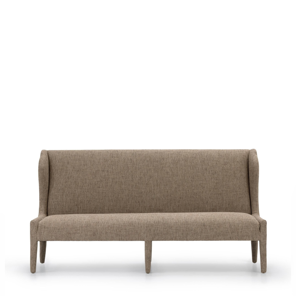 An extended version of the Amelie Dining Chair, the Amelie Banquette captivates with its high, gracefully curved backrest, elegant winged sides, and inviting seat.