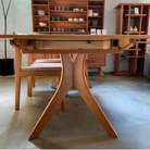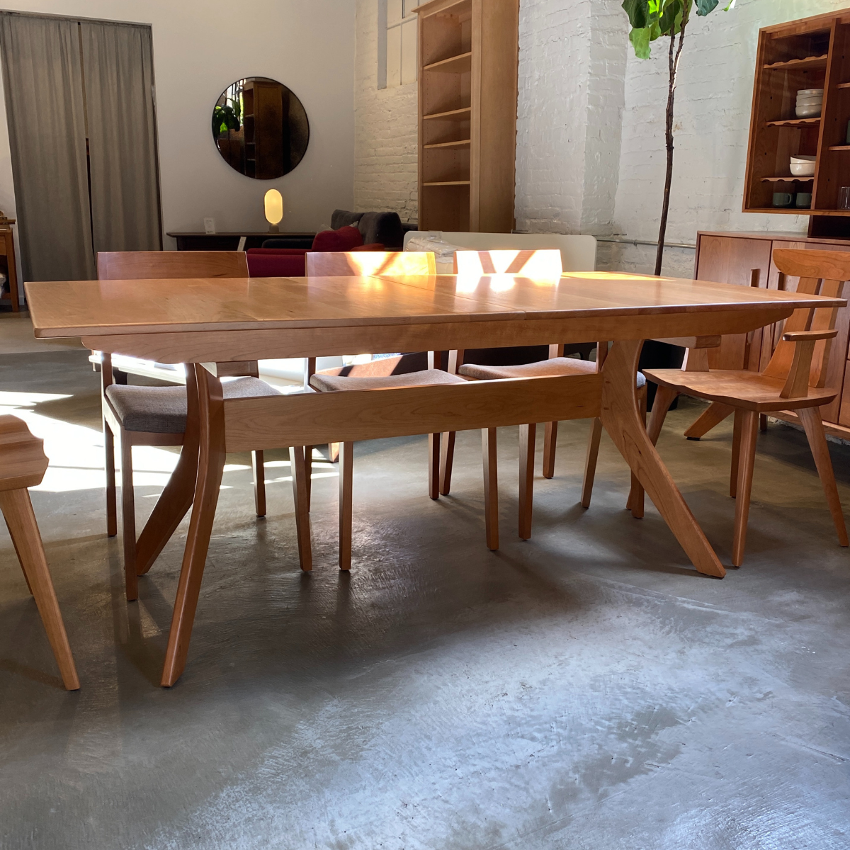 The double "X" formation of the Audrey Dining Table trestle creates a rigid base that provides diners with plenty of unobstructed leg room. Easily extend the table with a 24" wide shelf. Precision bearing glides and a self-storing butterfly leaf allows for effortless action.