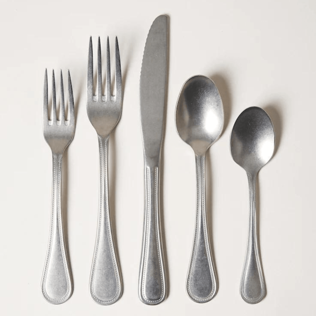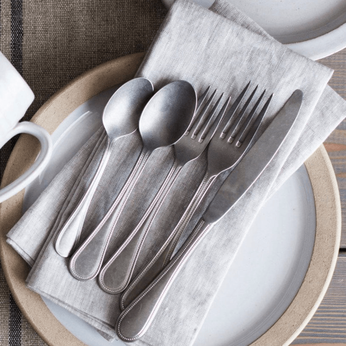 The development of these place settings all started with the mission to revive an American cutlery factory based in New York. Using stainless steel, Farmhouse Pottery created an heirloom-inspired collection to accompany your table setting. Each set is tumbled alongside ceramic material, giving every piece the special, pottery-inspired patina. The Coventry set features subtle details, creating a sophisticated tabletop.