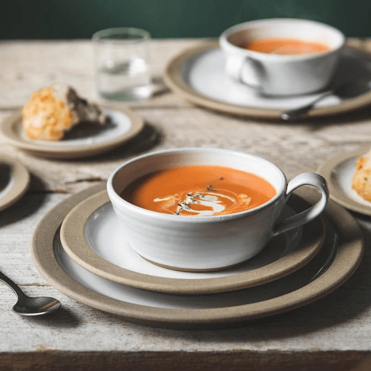 A modern spin on a classic style. Designed as a bowl that can be held closely and comfortably, this piece makes homemade soup or hearty oatmeal that much cozier.
