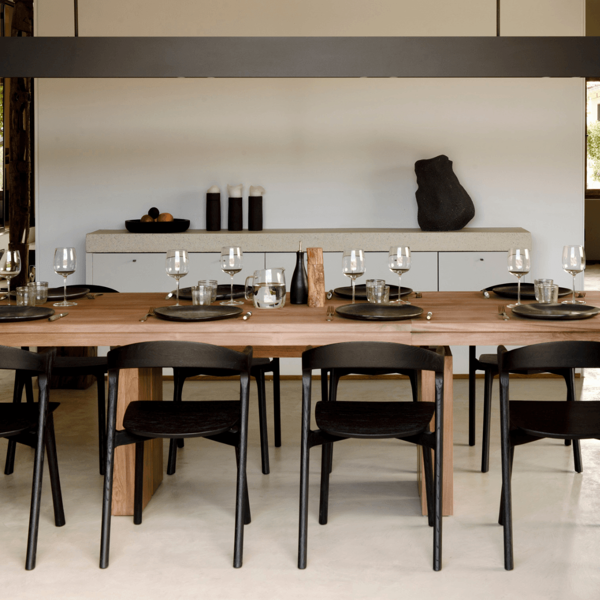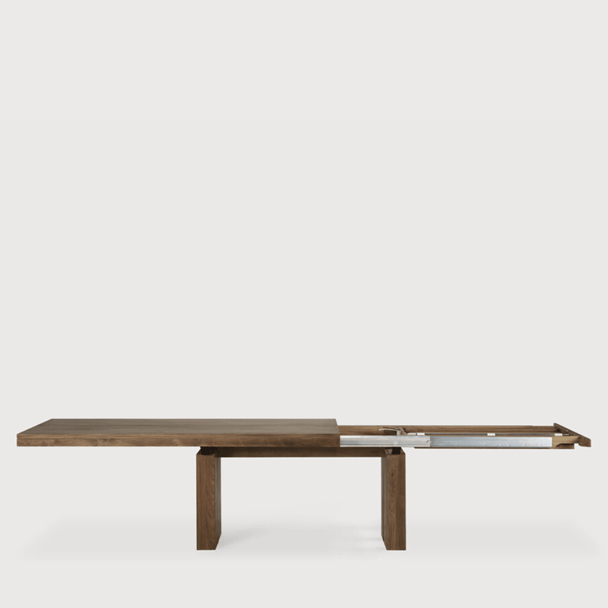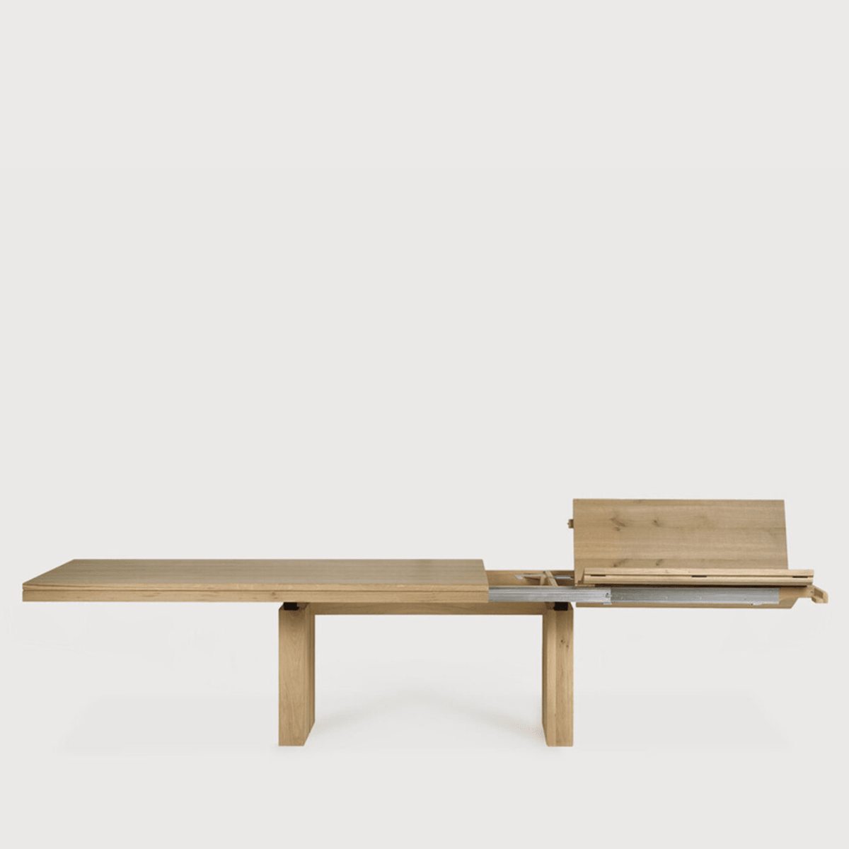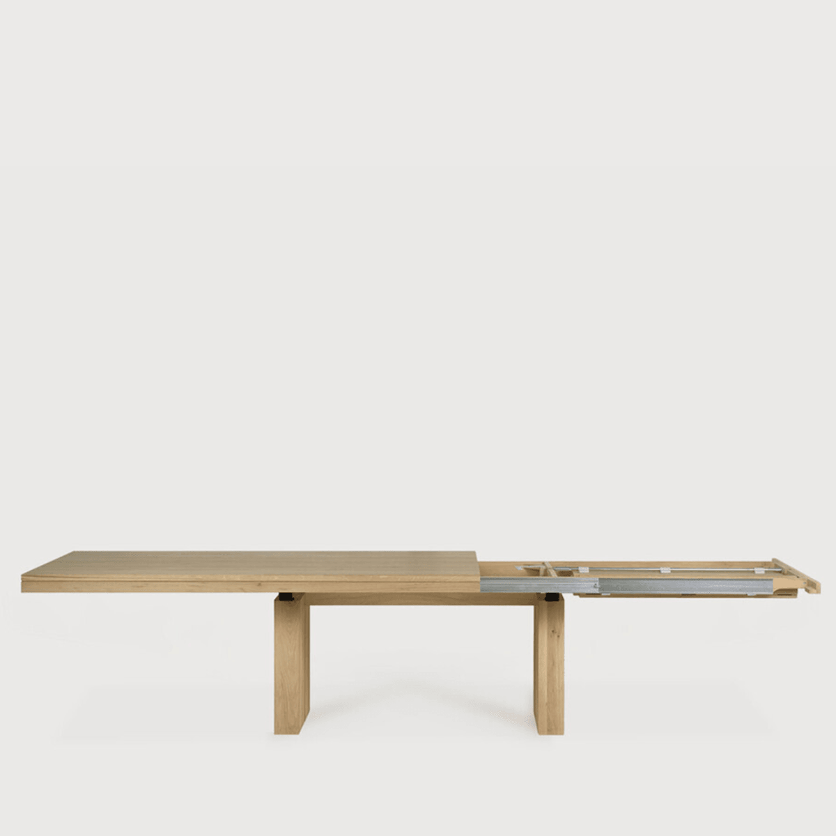 The Double dining table is a successful combination of pure lines and a solid look. Although the table looks heavy, it can very easily be extended single-handedly. It takes a few steps and no more than seconds to make space for whatever will be happening next in your home.