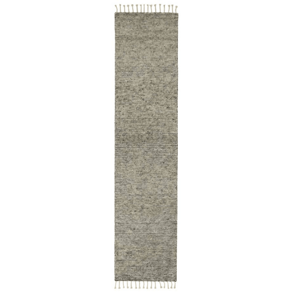 Inspired by textiles from the Tullu region in Morocco, the Alpine collection brings texture and versatility to both global and modern spaces. Crafted of natural wool, the hand-knotted Ammil rug features a plush, ridged feel and an asymmetrical trellis design in cream and black tones.