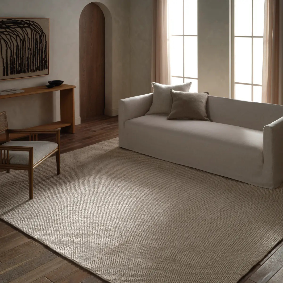 Contemporary and versatile, the eco-friendly Rebecca collection offers a sophisticated solid design to medium-traffic areas and outdoor spaces. Delivering a fresh accent to patios, kitchens, and dining rooms, the Rebecca is hand-woven with ultra-durable PET yarn. With a looped texture and neutral white colorway, here’s the ideal foundation for any indoor or outdoor space.