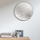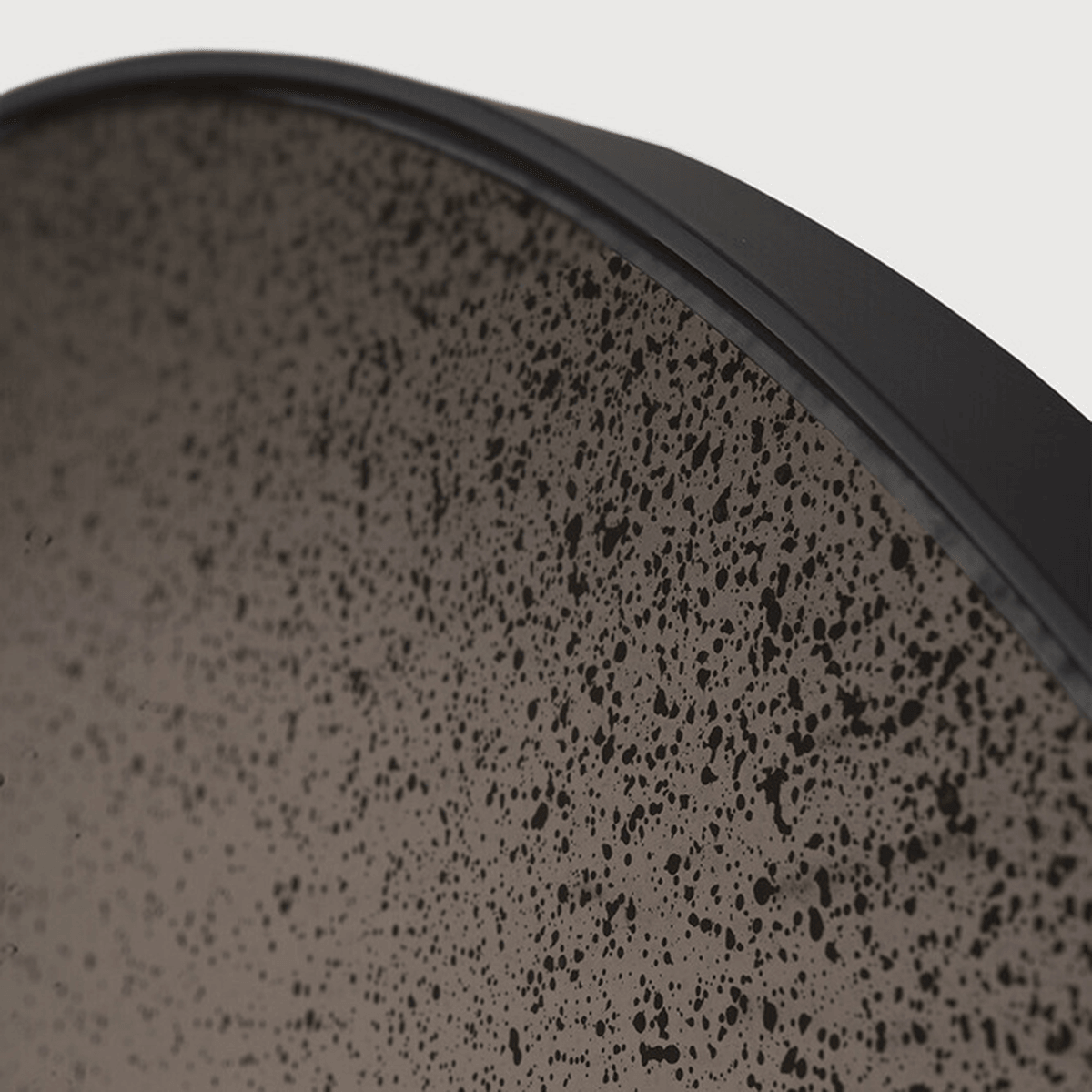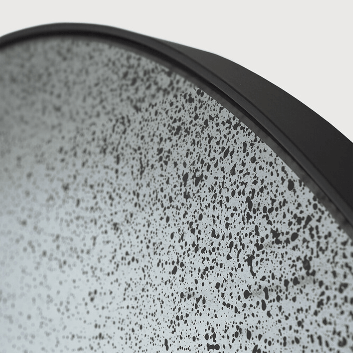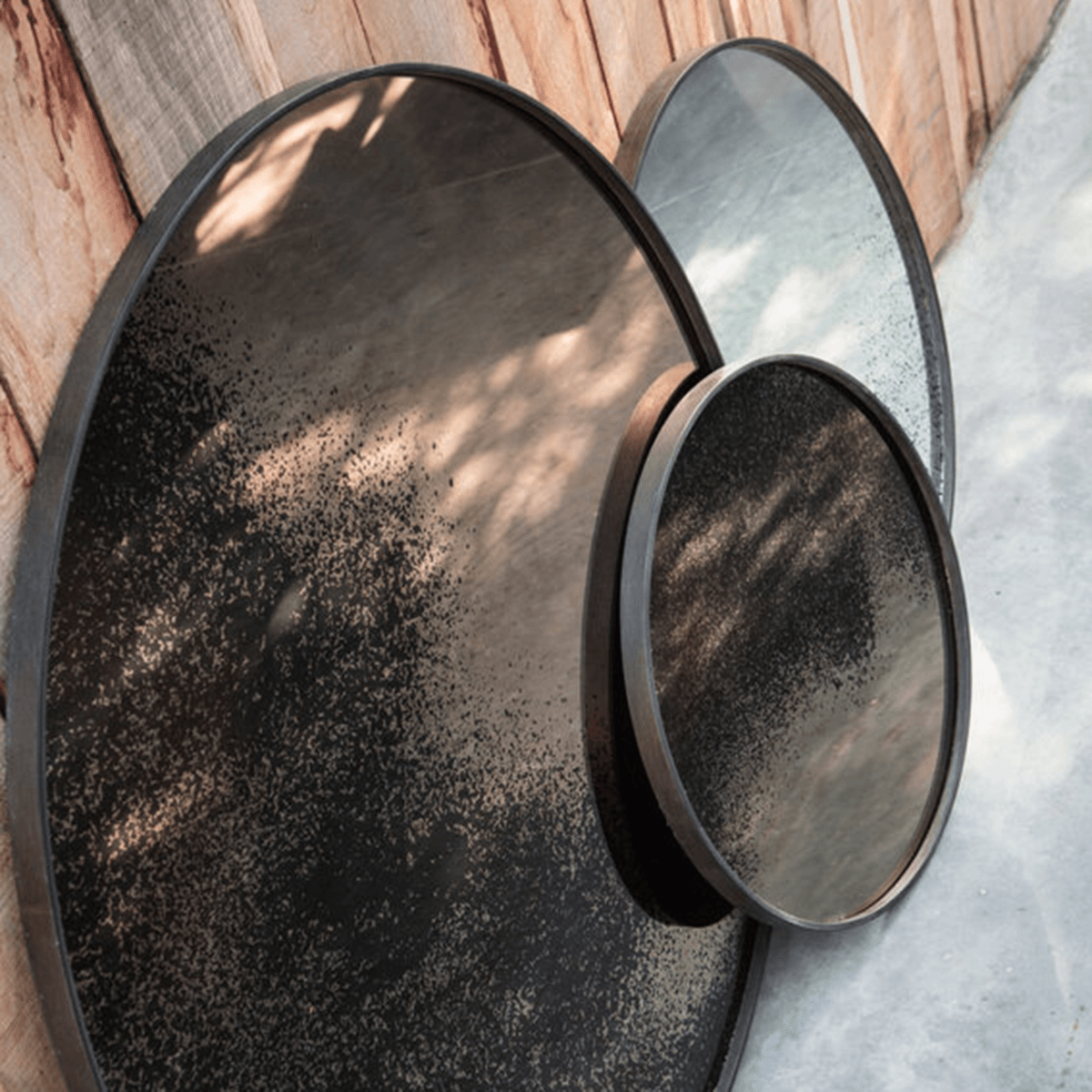 This aged round mirror finds itself in the middle ground between functionality and art. Adorning the living room as wall art or serving a practical purpose in a bathroom or dressing, the unique piece gives the functional object an artful twist.