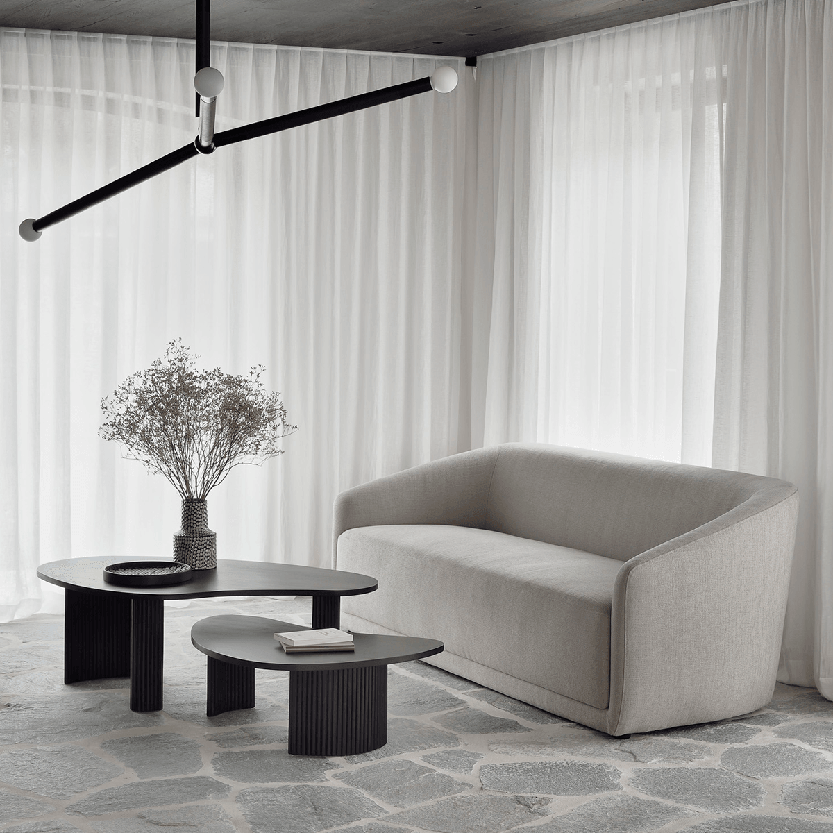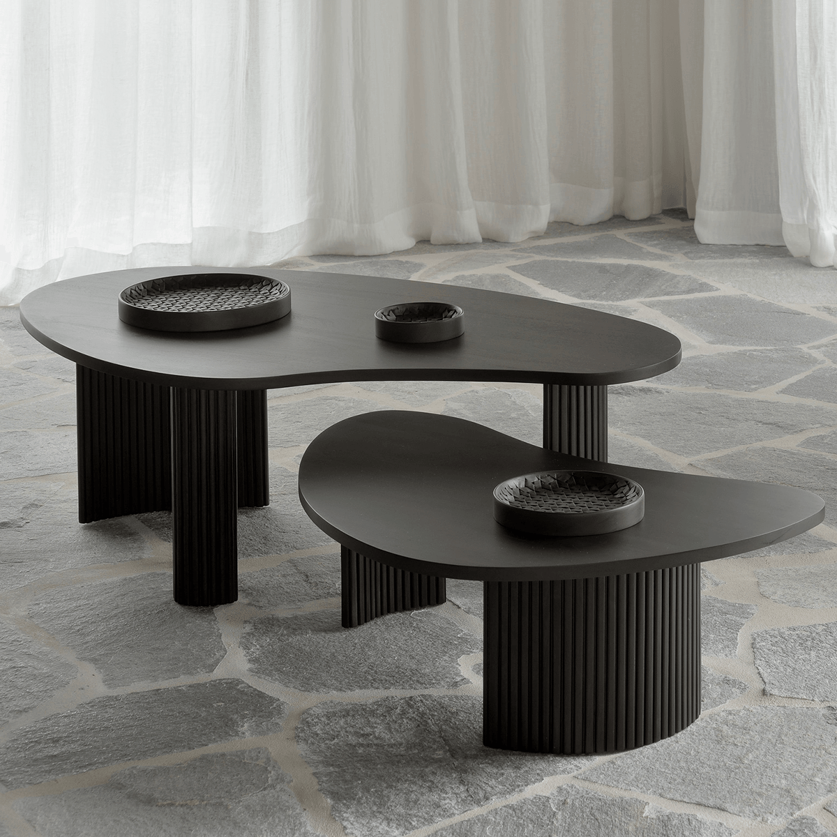 Playful, pebble shapes set on a beautiful, folded, base. The Boomerang coffee table is a fantastic and well-proportioned addition to any space. Configured with the two sizes together, or as a stand-alone, this design is sure to capture attention.
