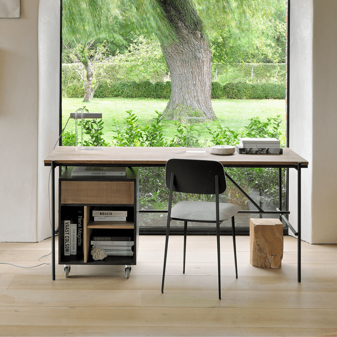 Thanks to the beautiful teak wood, hand carved details and handy wheels, the Oscar drawer unit can easily be a stand-alone piece. It also fits perfectly under the open Oscar desk for extra storage. This design by Alain van Havre is a must-have staple for every office.