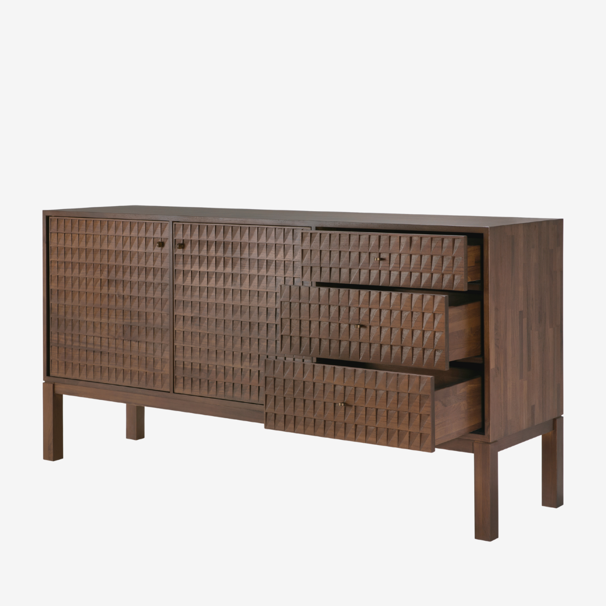 Sono, where antique-inspired craftsmanship meets modern elegance. This refined statement collection features hand-carved panels, offering functional storage behind classic beauty. Delicate casted brass handles elevate its look, making for a stunning addition to a room. It's the perfect blend of style and practicality, providing ample storage while enhancing your décor with its special detailing.