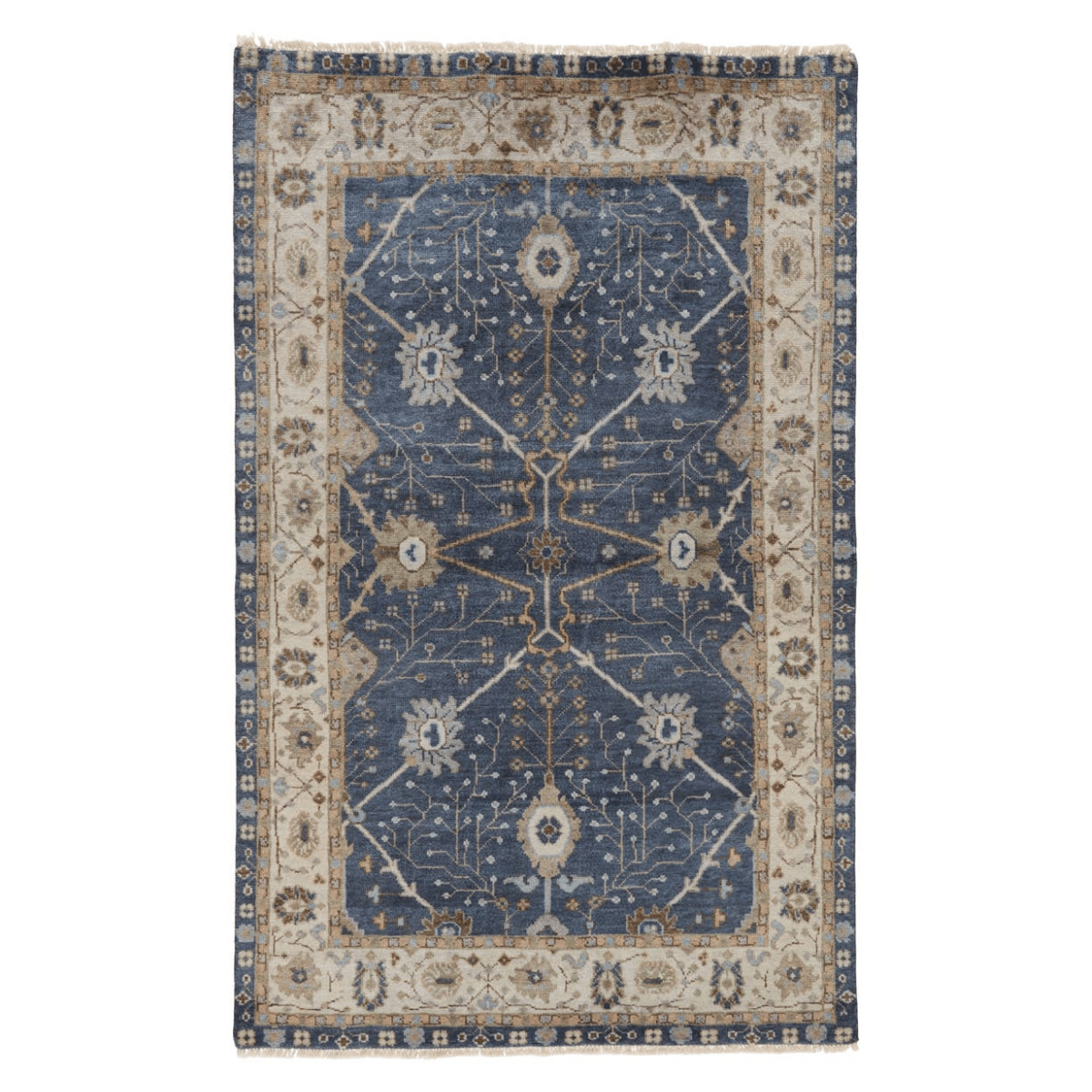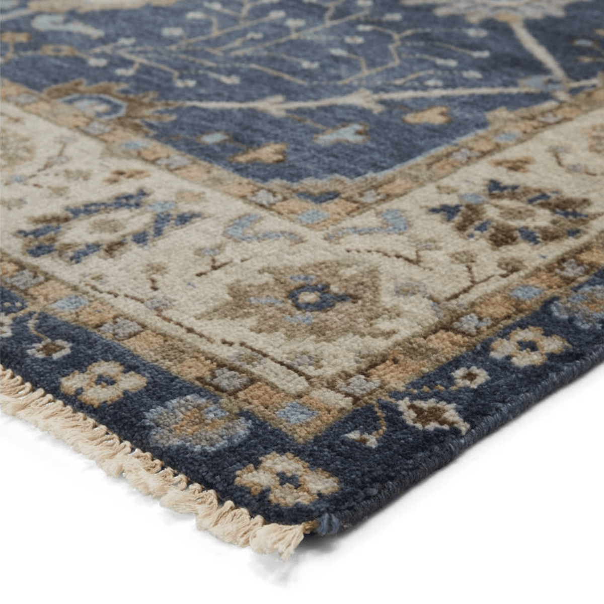 The Anise collection calls on classic elegance for a stunningly soft and richly patterned addition to traditional and contemporary spaces alike. The design showcases Persian floral medallions and an intricate border. An antiqued wash and knotted fringe detailing complete the Old World look of this hand-knotted wool rug.