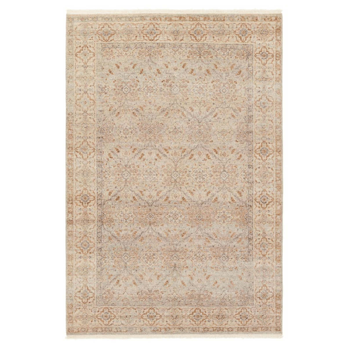 Whimsical colorways combine with the opulent detail of a traditional-inspired pattern. The Someplace in Time collection represents nostalgia and progression, heritage and the contemporary. The Sepia rug's light tan, brown, gray, and bronze details ground spaces with luxe appeal and an exceptional hand-knotted quality. Intricate floral detailing and a thick border enhance the vintage feel. Crafted of handspun wool, this artisan-made rug boasts an authentic, timeworn look.