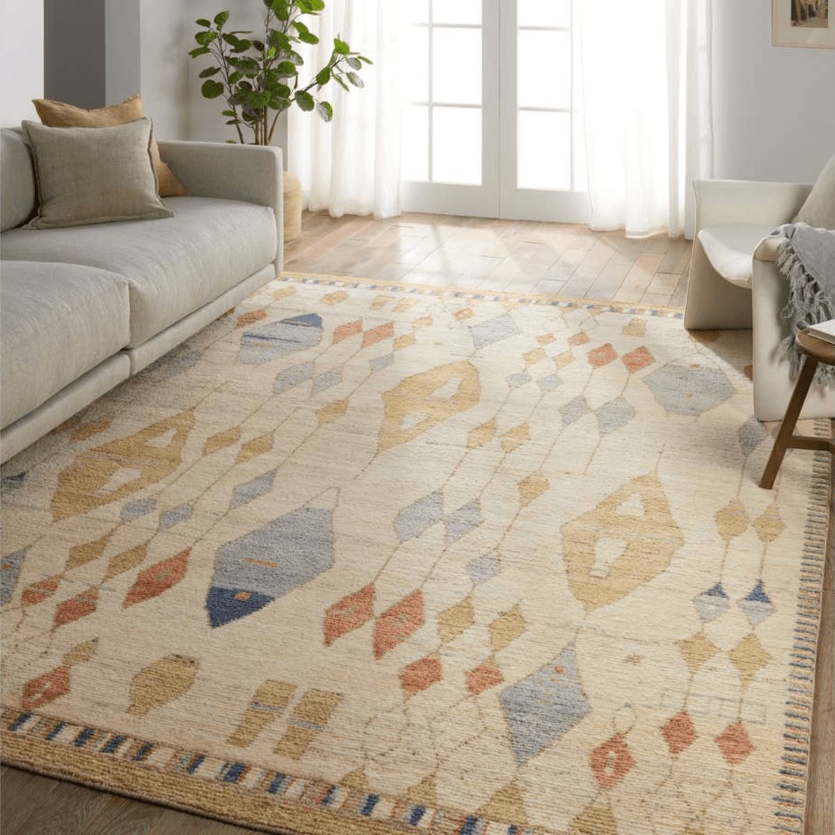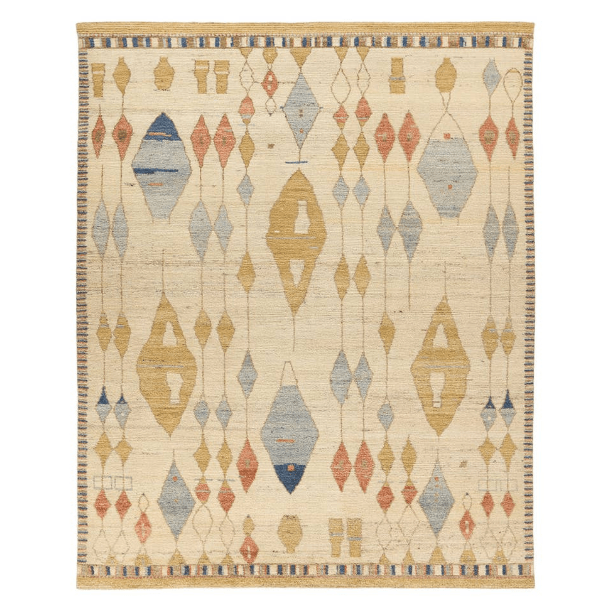 Enrich living spaces with the exotic allure of the Zaira Collection - a fusion of modern Moroccan designs and unparalleled craftsmanship. Handknotted in India with 22 knots per square inch, these rugs exude luxury and artistry. The Tonnara rug showcases an intriguing diamond pattern. Short, 100% wool pile is naturally stain resistant and can withstand high-traffic areas such as living rooms, halls, foyers, and playrooms.